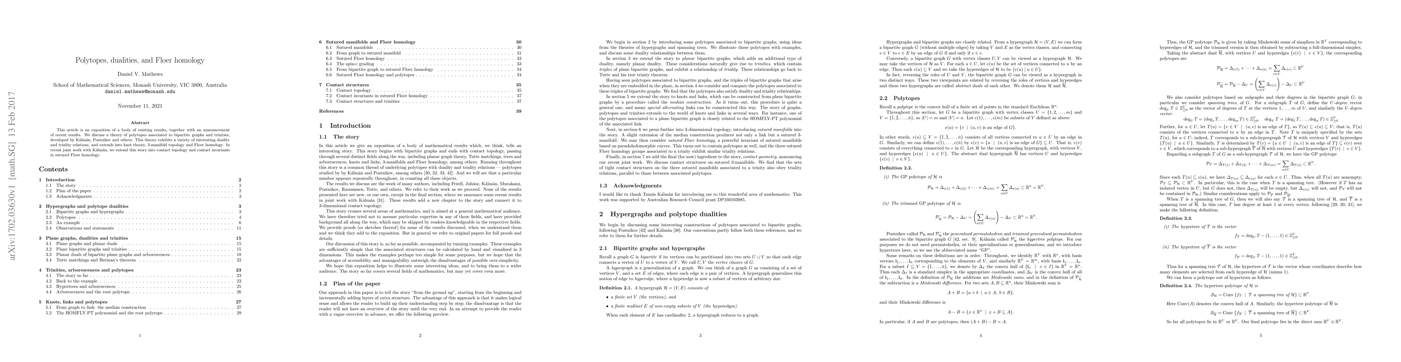 This article is an exposition of a body of existing results, together with an announcement of recent results. We discuss a theory of polytopes associated to bipartite graphs and trinities, developed by K\'alm\'an, Postnikov and others. This theory exhibits a variety of interesting duality and triality relations, and extends into knot theory, 3-manifold topology and Floer homology. In recent joint work with K\'alm\'an, we extend this story into contact topology and contact invariants in sutured Floer homology.