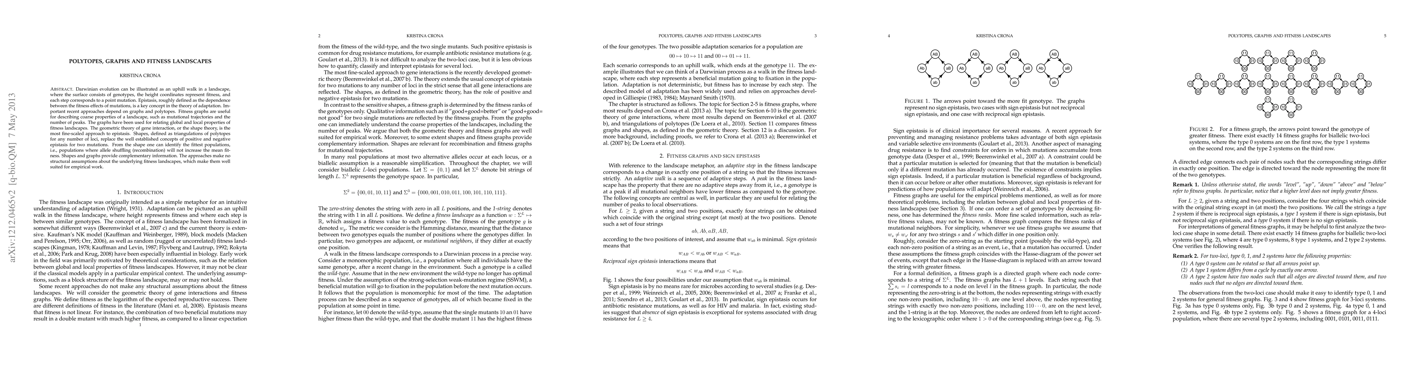 This paper explores the use of graphs and polytopes to model Darwinian evolution, illustrating fitness landscapes as uphill walks where each step represents a mutation. It introduces the concept of epistasis and discusses how fitness graphs and polytopes' shapes provide complementary information to describe mutational trajectories and global/local properties of fitness landscapes without making structural assumptions.