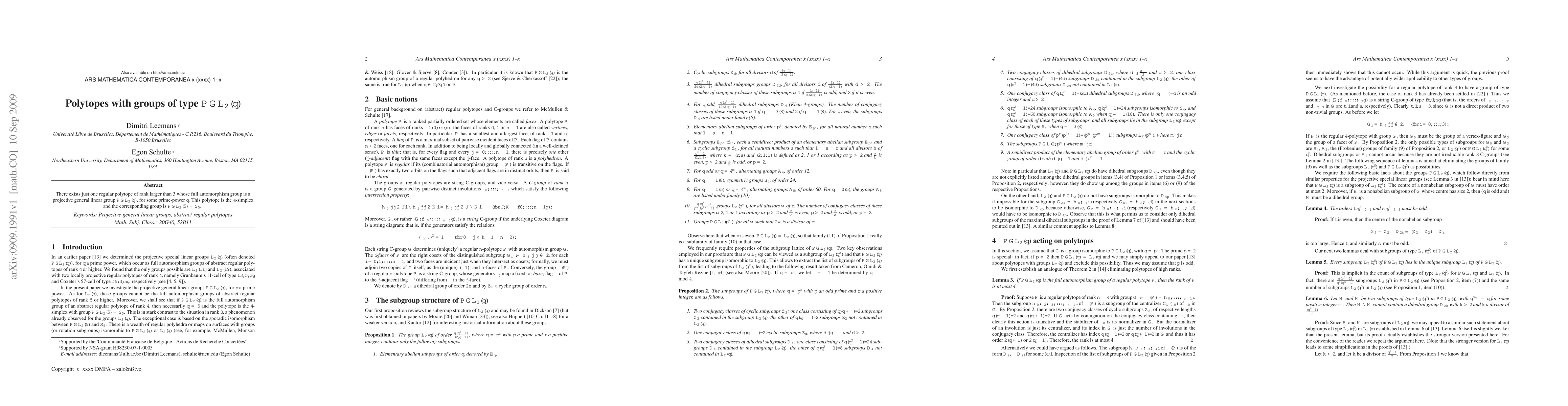 Summary: The 4-simplex is the only regular polytope of rank greater than 3 with an automorphism group isomorphic to PGL_2(q), specifically PGL_2(5) which is equivalent to S_5. No other such polytopes exist for larger ranks.