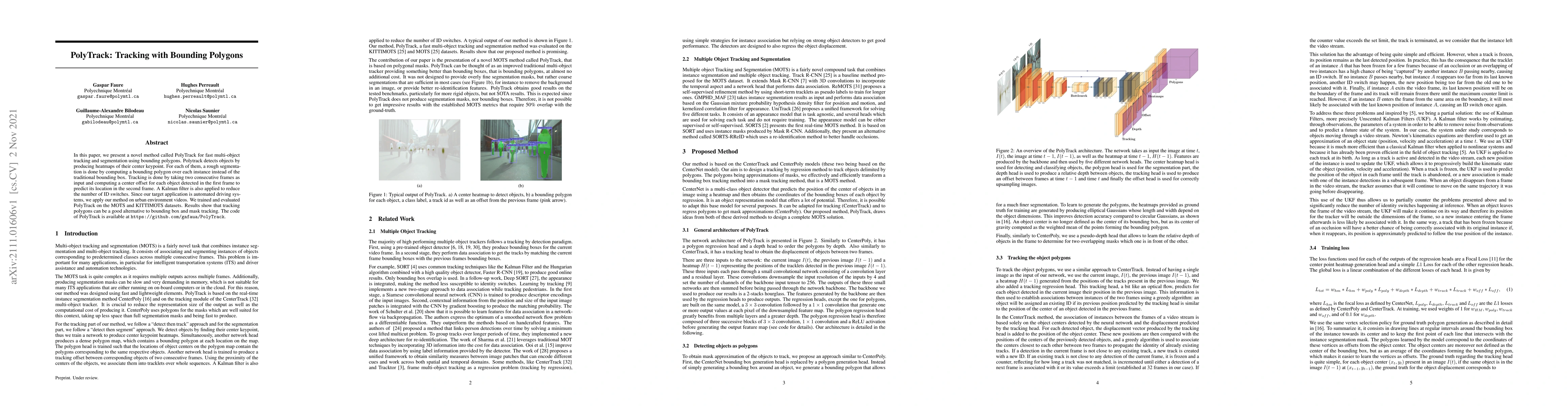 PolyTrack is a novel method for fast multi-object tracking using bounding polygons instead of traditional bounding boxes, employing a Kalman filter to minimize ID switches. It shows competitive performance on urban driving datasets compared to bounding box and mask tracking.