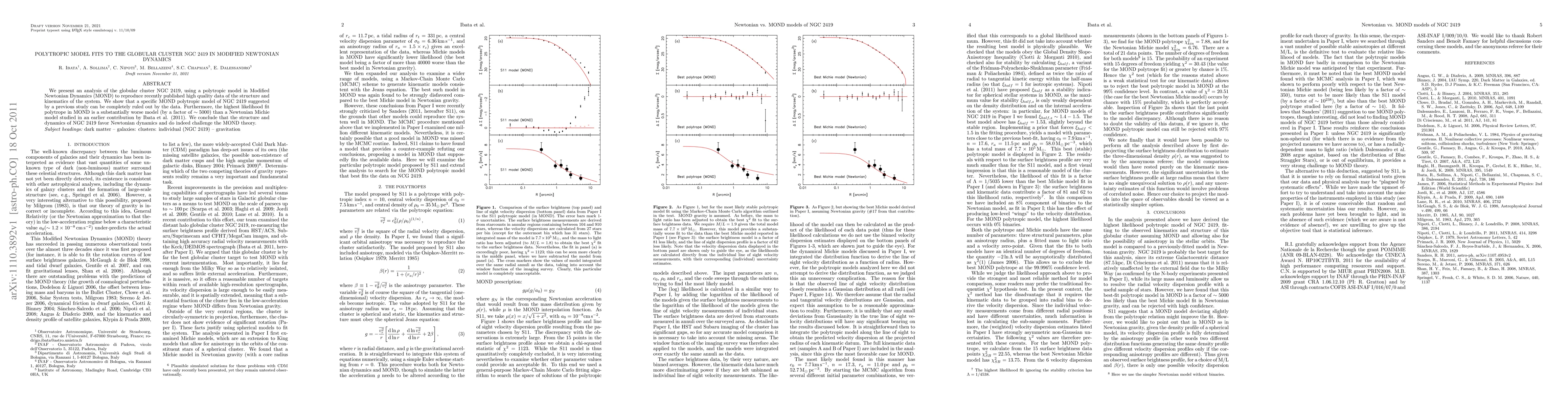 This paper analyzes the globular cluster NGC 2419 using a polytropic model within Modified Newtonian Dynamics (MOND), finding that a specific MOND model is ruled out by recent data. The best MOND fit is significantly worse than a Newtonian Michie model, suggesting that Newtonian dynamics better explains NGC 2419's structure and dynamics, challenging MOND theory.