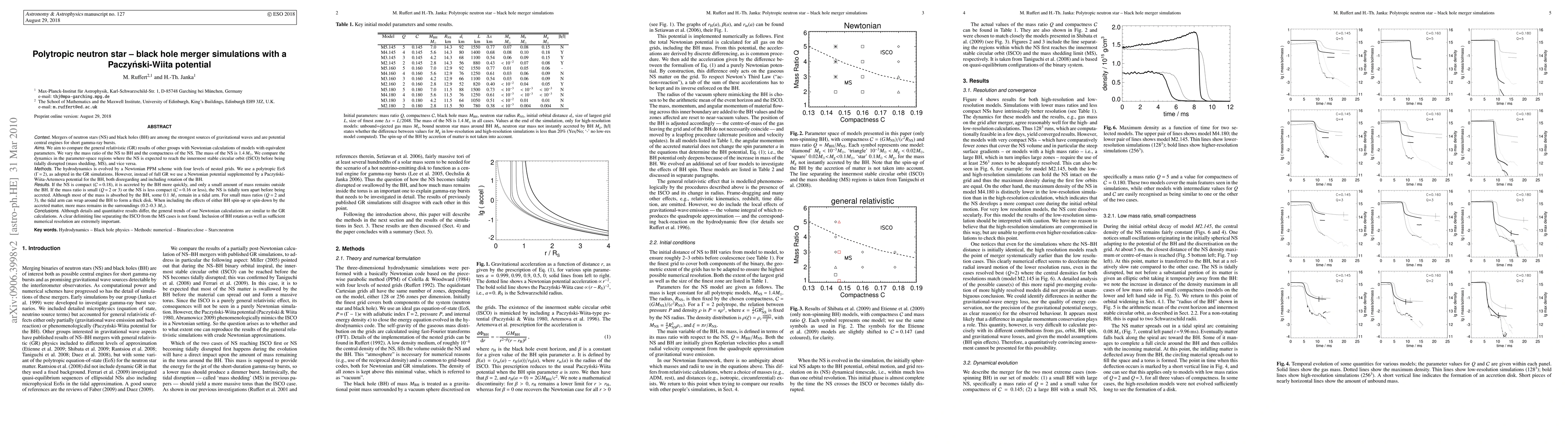 Researchers simulated neutron star-black hole mergers using a Newtonian potential and found that compact neutron stars are accreted quickly, while less compact ones are torn apart before being absorbed.