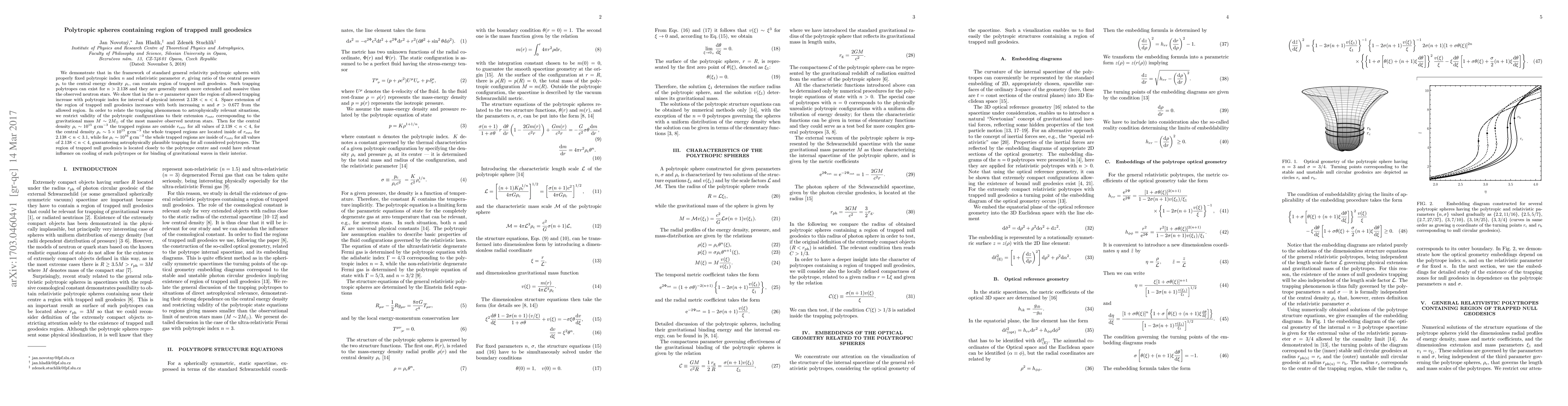 We demonstrate that in the framework of standard general relativity polytropic spheres with properly fixed polytropic index $n$ and relativistic parameter $\sigma$, giving ratio of the central pressure $p_\mathrm{c}$ to the central energy density $\rho_\mathrm{c}$, can contain region of trapped null geodesics. Such trapping polytropes can exist for $n > 2.138$ and they are generally much more extended and massive than the observed neutron stars. We show that in the $n$--$\sigma$ parameter space the region of allowed trapping increase with polytropic index for interval of physical interest $2.138 < n < 4$. Space extension of the region of trapped null geodesics increases with both increasing $n$ and $\sigma > 0.677$ from the allowed region. In order to relate the trapping phenomenon to astrophysically relevant situations, we restrict validity of the polytropic configurations to their extension $r_\mathrm{extr}$ corresponding to the gravitational mass $M \sim 2M_{\odot}$ of the most massive observed neutron stars. Then for the central density $\rho_\mathrm{c} \sim 10^{15}$~g\,cm$^{-3}$ the trapped regions are outside $r_\mathrm{extr}$ for all values of $2.138 < n < 4$, for the central density $\rho_\mathrm{c} \sim 5 \times 10^{15}$~g\,cm$^{-3}$ the whole trapped regions are located inside of $r_\mathrm{extr}$ for $2.138 < n < 3.1$, while for $\rho_\mathrm{c} \sim 10^{16}$~g\,cm$^{-3}$ the whole trapped regions are inside of $r_\mathrm{extr}$ for all values of $2.138 < n < 4$, guaranteeing astrophysically plausible trapping for all considered polytropes. The region of trapped null geodesics is located closely to the polytrope centre and could have relevant influence on cooling of such polytropes or for binding of gravitational waves in their interior.