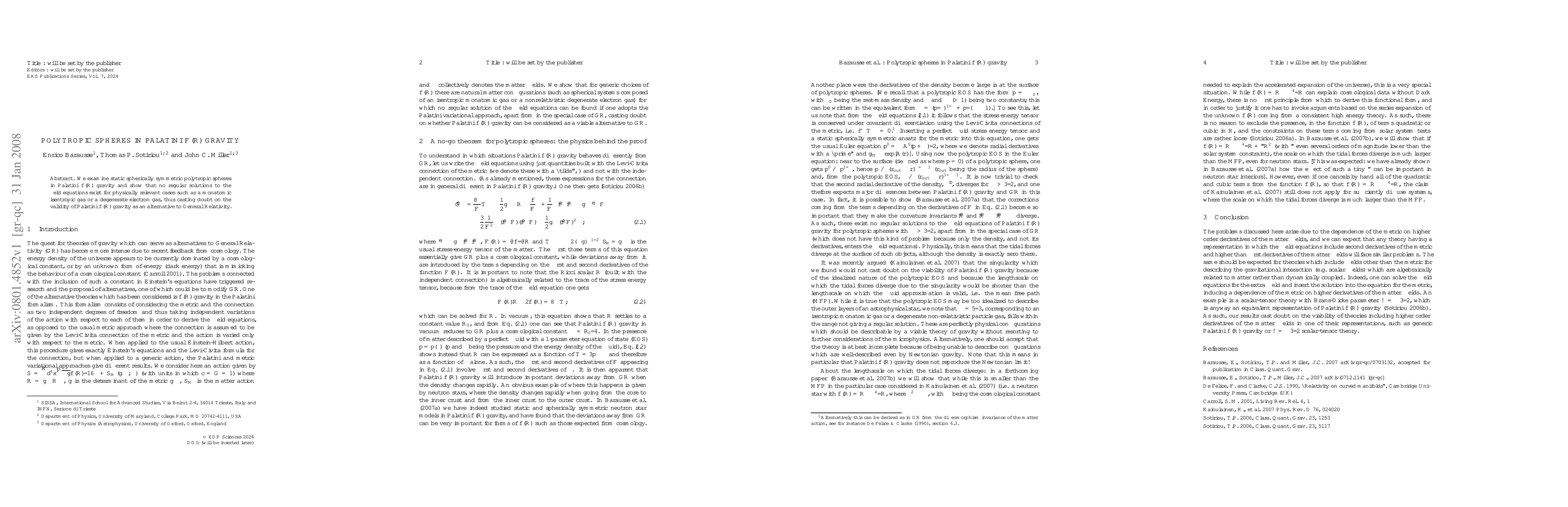 This paper investigates static spherically symmetric polytropic spheres in Palatini f(R) gravity, finding no regular solutions for physically relevant cases like monatomic gases or degenerate electron gases, which questions the viability of Palatini f(R) gravity as an alternative to General Relativity.