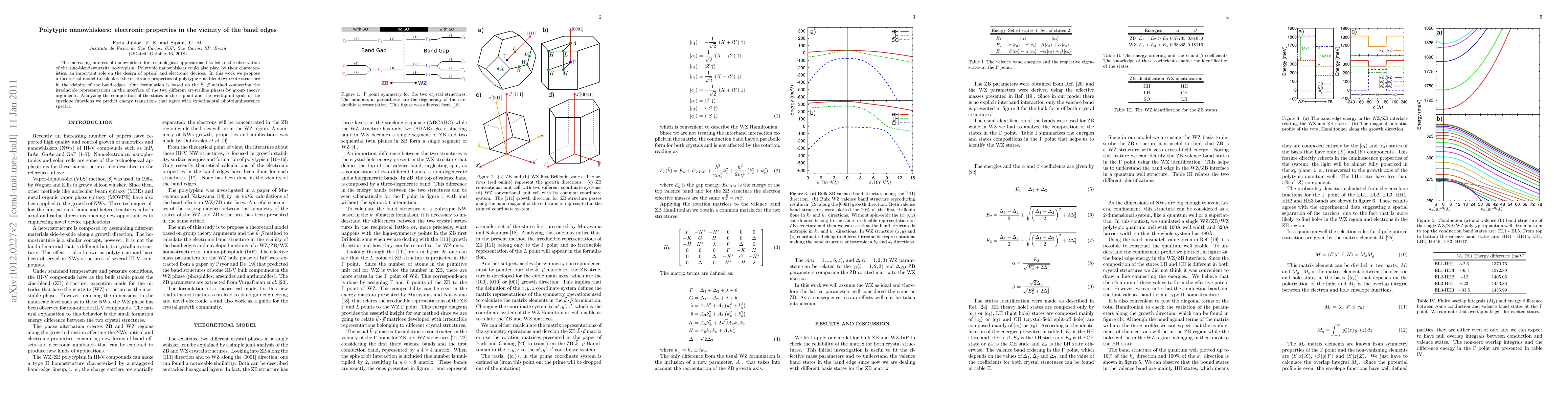The increasing interest of nanowhiskers for technological applications has led to the observation of the zinc-blend/wurtzite polytypism. Polytypic nanowhiskers could also play, by their characteristics, an important role on the design of optical and electronic devices. In this work we propose a theoretical model to calculate the electronic properties of polytypic zinc-blend/wurtzite structure in the vicinity of the band edges. Our formulation is based on the $\vec{k} \cdot \vec{p}$ method connecting the irreducible representations in the interface of the two different crystalline phases by group theory arguments. Analyzing the composition of the states in the $\Gamma$ point and the overlap integrals of the envelope functions we predict energy transitions that agree with experimental photoluminescence spectra.
