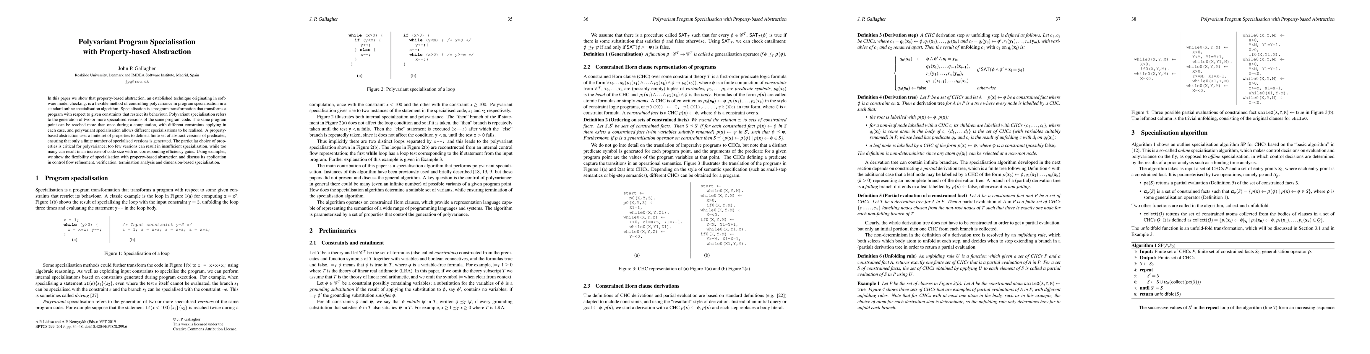 This paper demonstrates that property-based abstraction is an effective method for managing polyvariance in program specialisation, ensuring efficient generation of multiple specialised versions while controlling code size. The technique is shown to be versatile in applications like control flow refinement, verification, and termination analysis.