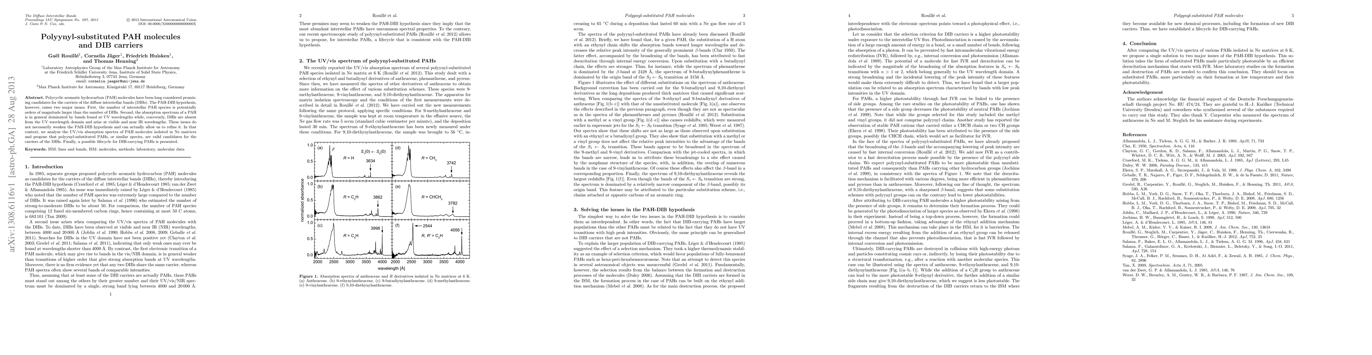 Polycyclic aromatic hydrocarbon (PAH) molecules have been long considered promising candidates for the carriers of the diffuse interstellar bands (DIBs). The PAH-DIB hypothesis, however, raises two major issues. First, the number of interstellar PAH species is potentially orders of magnitude larger than the number of DIBs. Second, the absorption spectrum of a PAH is in general dominated by bands found at UV wavelengths while, conversely, DIBs are absent from the UV wavelength domain and arise at visible and near IR wavelengths. These issues do not necessarily weaken the PAH-DIB hypothesis and can actually allow us to refine it. In that context, we analyze the UV/vis absorption spectra of PAH molecules isolated in Ne matrices and propose that polyynyl-substituted PAHs, or similar species, are valid candidates for the carriers of the DIBs. Finally, a possible lifecycle for DIB-carrying PAHs is presented.
