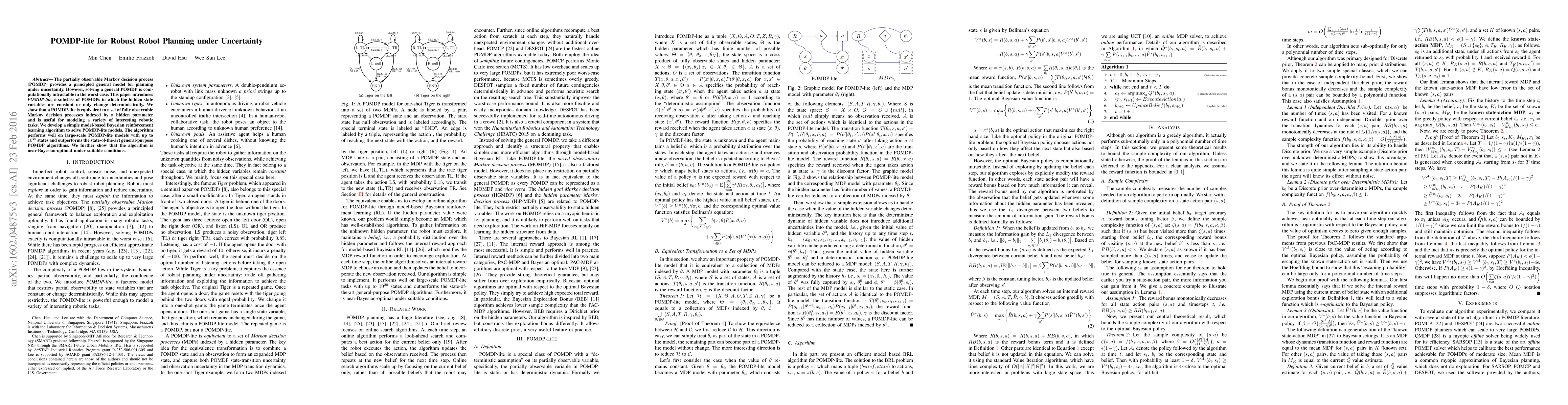 The partially observable Markov decision process (POMDP) provides a principled general model for planning under uncertainty. However, solving a general POMDP is computationally intractable in the worst case. This paper introduces POMDP-lite, a subclass of POMDPs in which the hidden state variables are constant or only change deterministically. We show that a POMDP-lite is equivalent to a set of fully observable Markov decision processes indexed by a hidden parameter and is useful for modeling a variety of interesting robotic tasks. We develop a simple model-based Bayesian reinforcement learning algorithm to solve POMDP-lite models. The algorithm performs well on large-scale POMDP-lite models with up to $10^{20}$ states and outperforms the state-of-the-art general-purpose POMDP algorithms. We further show that the algorithm is near-Bayesian-optimal under suitable conditions.