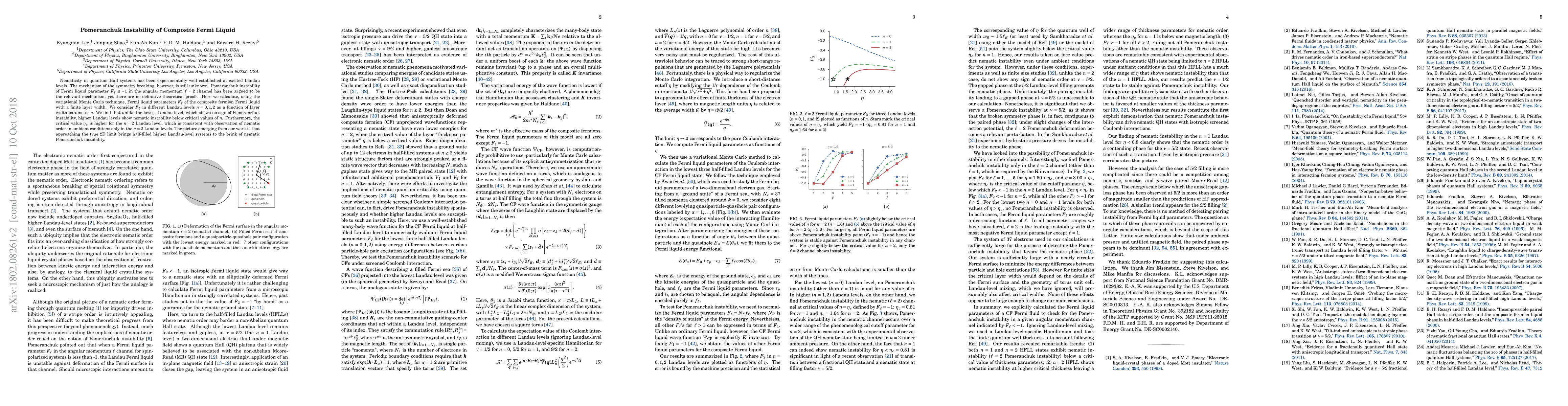 This study uses variational Monte Carlo to investigate Fermi liquid parameters $F_\ell$ in composite fermion Fermi liquids across different Landau levels. It finds that while the lowest Landau level shows no Pomeranchuk instability, higher levels, especially $n=2$, exhibit nematic instability below critical layer width values, aligning with experimental observations of nematic order.