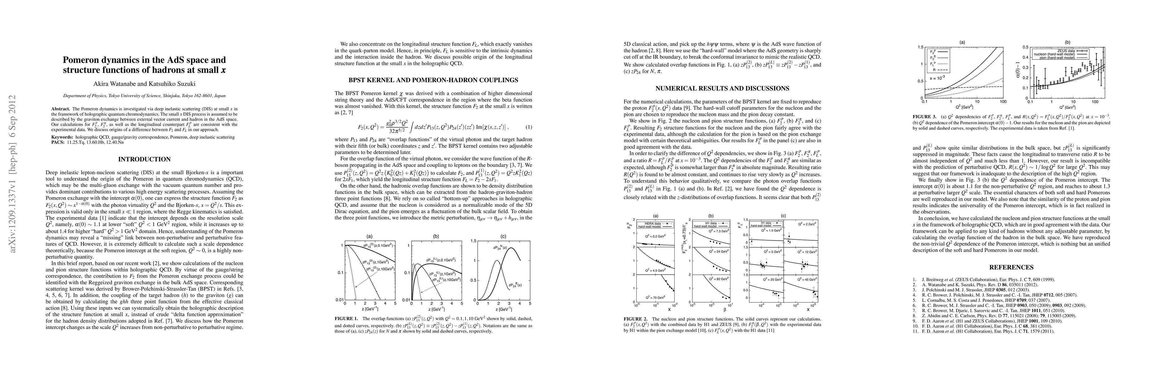 This paper investigates Pomeron dynamics in the AdS space using holographic quantum chromodynamics, focusing on the structure functions of hadrons at small x through deep inelastic scattering, and finds consistency with experimental data for $F_2^p$, $F_2^\pi$, and $F_L^p$, while discussing the differences between $F_2$ and $F_L$.