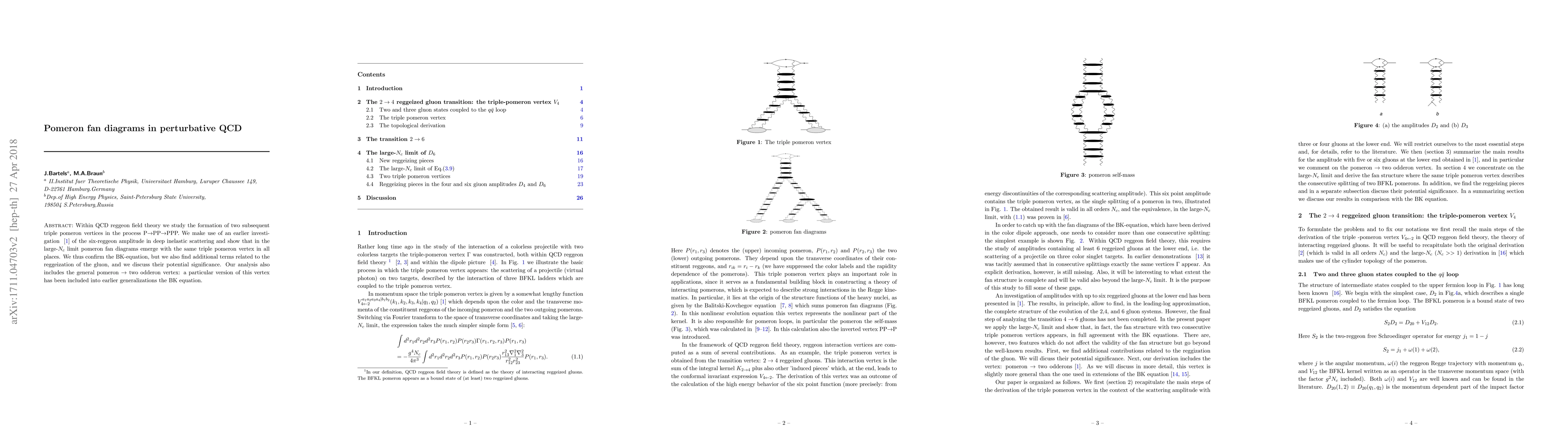 This paper investigates pomeron fan diagrams in perturbative QCD, confirming the BK-equation through the study of two subsequent triple pomeron vertices within QCD reggeon field theory. It also identifies additional terms related to gluon reggeization and discusses their potential significance.