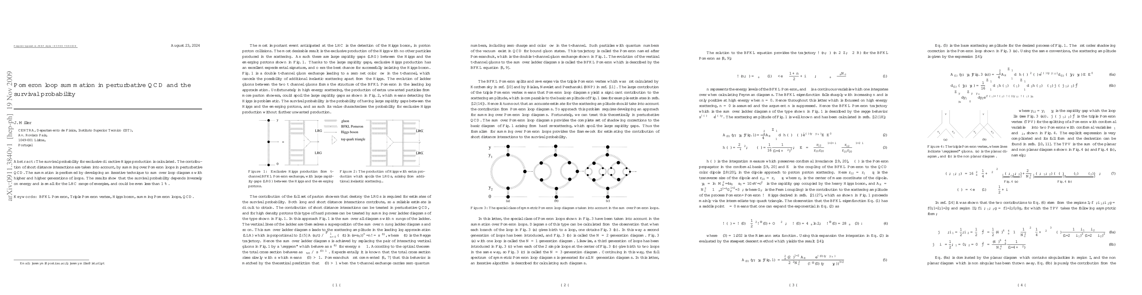 This paper calculates the survival probability for exclusive diffractive Higgs production in perturbative QCD, employing an iterative technique to sum over Pomeron loops. The findings indicate that the survival probability is inversely proportional to energy and is extremely small, potentially less than 1%, in the energy range of the LHC.