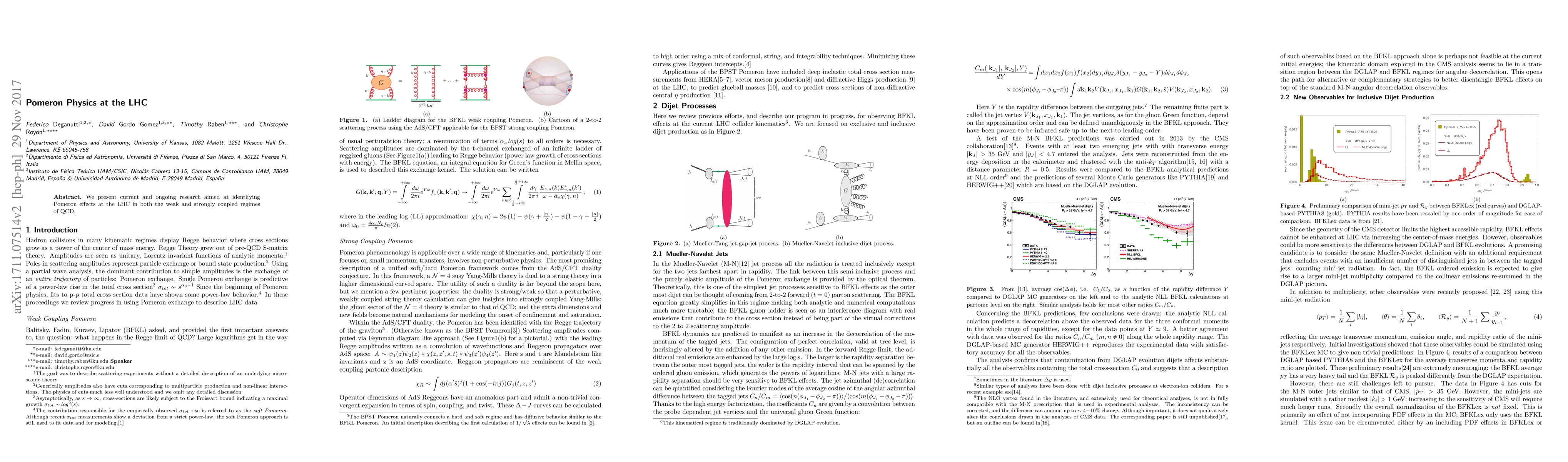 We present current and ongoing research aimed at identifying Pomeron effects at the LHC in both the weak and strongly coupled regimes of QCD.