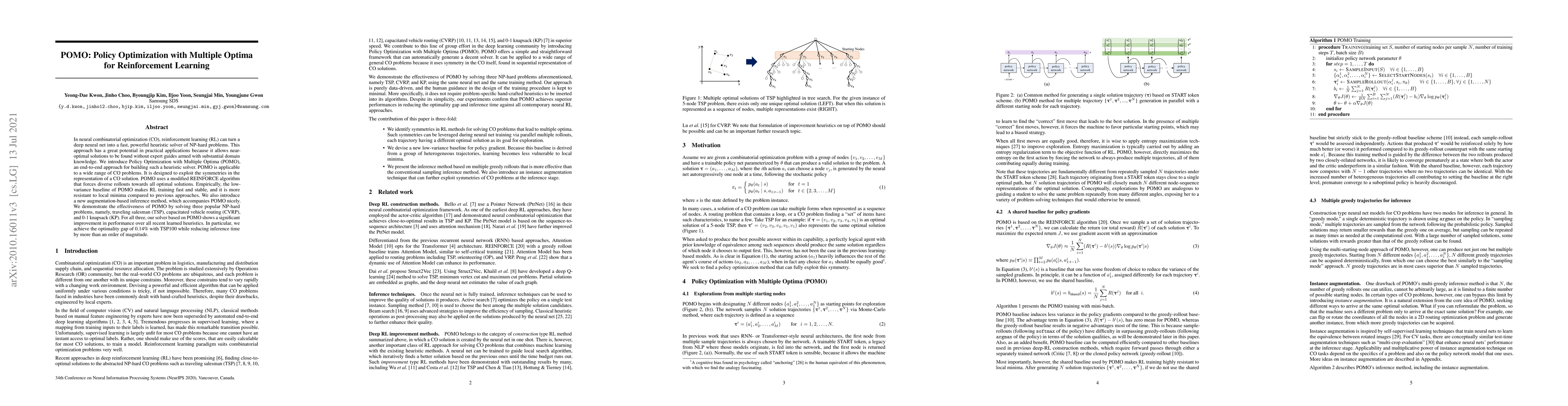 A new approach called Policy Optimization with Multiple Optima (POMO) improves reinforcement learning for solving NP-hard problems, achieving near-optimal solutions with minimal domain knowledge.