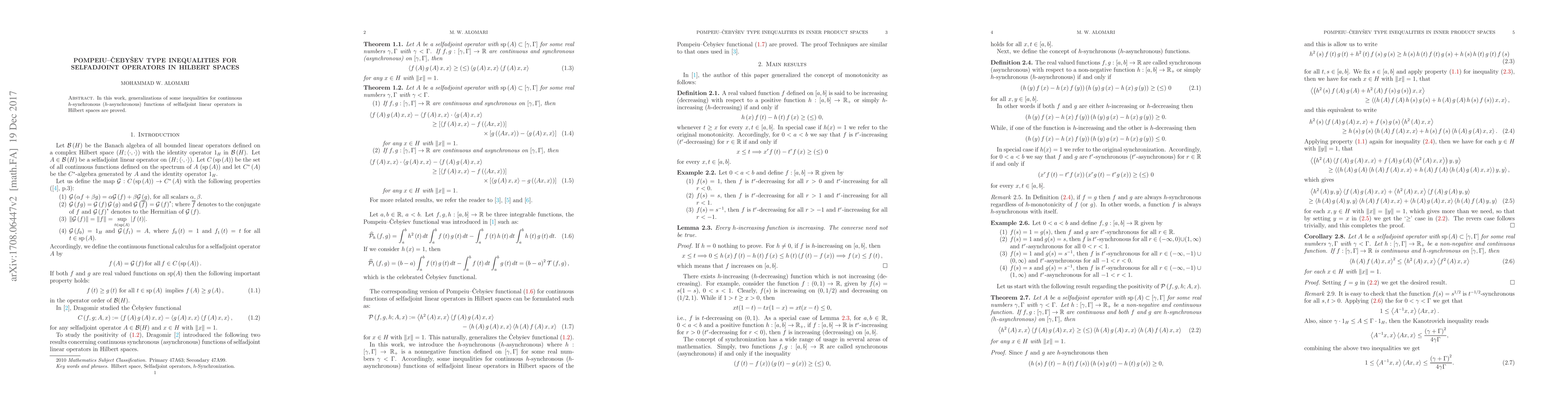 Summary: This paper generalizes Pompeiu-Chebyshev type inequalities for selfadjoint operators in Hilbert spaces, extending results for continuous $h$-synchronous and $h$-asynchronous functions. The findings provide new insights into operator inequalities in functional analysis.