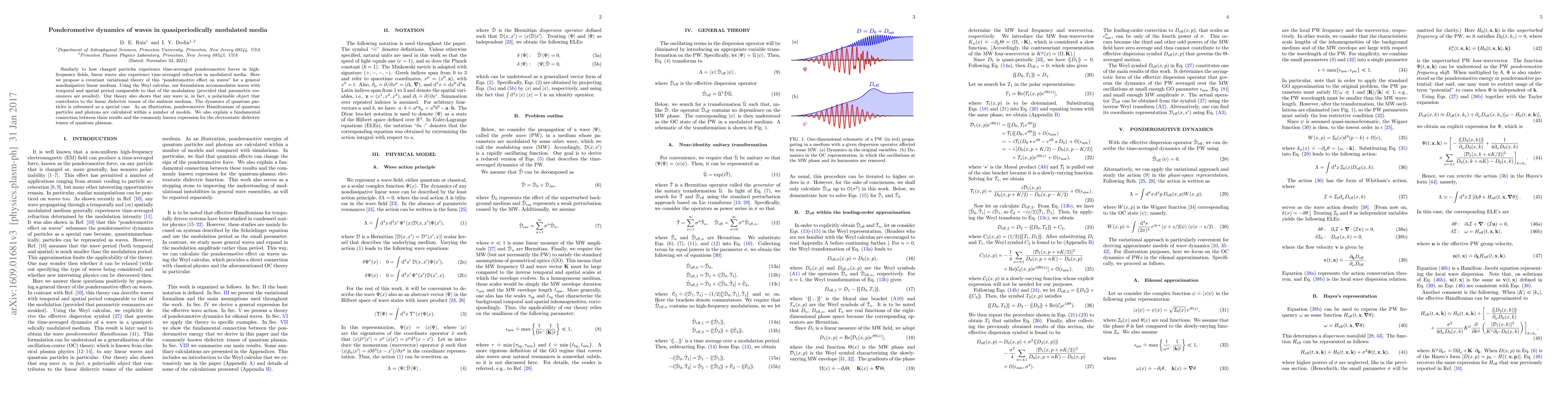 This paper proposes a new theory for how waves interact with modulated media, showing that waves can experience a 'ponderomotive effect' similar to charged particles in high-frequency fields. The research also reveals that any wave contributes to the linear dielectric tensor of the ambient medium.