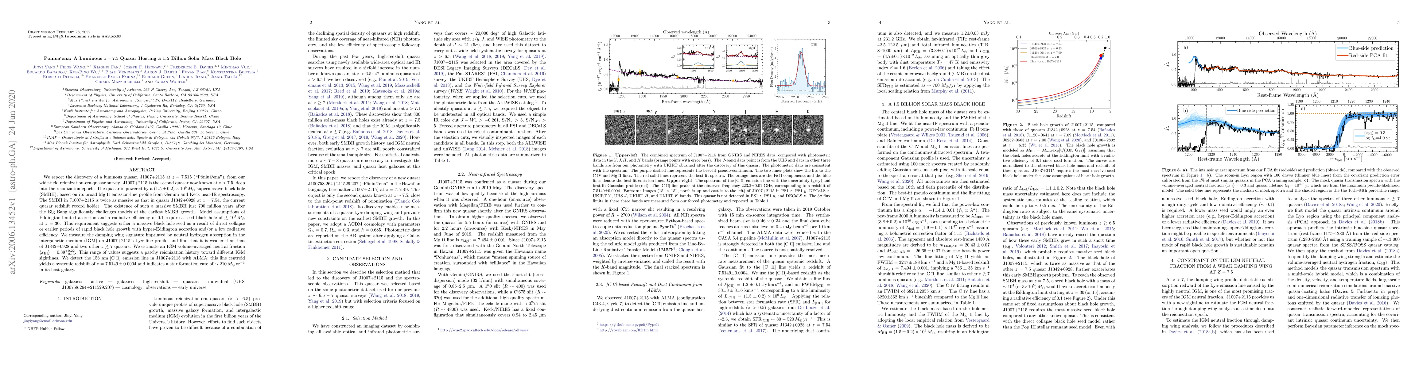 The discovery of the luminous quasar J1007+2115 ("Pōniuā'ena") at $z=7.515$ reveals a supermassive black hole of $1.5\times10^9$ $M_{\odot}$, twice as massive as the previous $z>7.5$ quasar, challenging early black hole growth models. The quasar's star formation rate is estimated at $\sim210$ $M_{\odot}$ yr$^{-1}$.