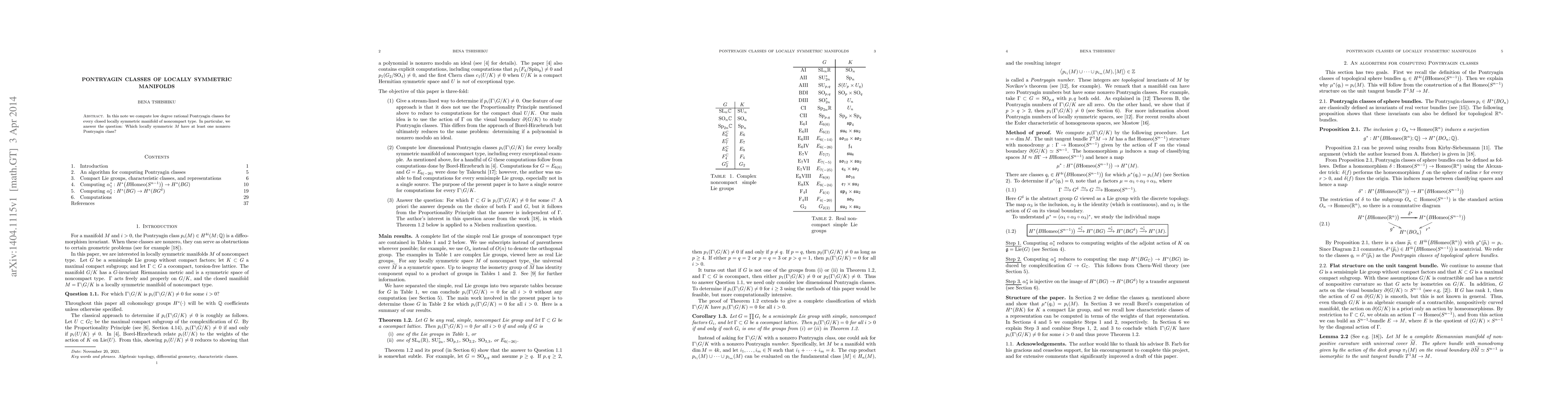 In this note we compute low degree rational Pontryagin classes for every closed locally symmetric manifold of noncompact type. In particular, we answer the question: Which locally symmetric M have at least one nonzero Pontryagin class?