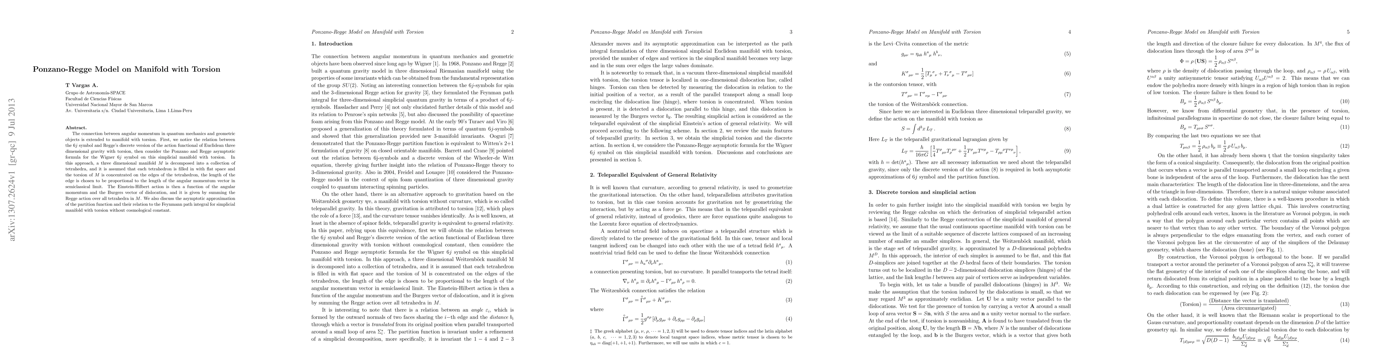 This paper extends the Ponzano-Regge model to manifolds with torsion, linking quantum mechanics' angular momentum to geometric objects. It explores the $6j$ symbol's relation to Regge's action functional in Euclidean three-dimensional gravity with torsion, and discusses the asymptotic formula for the Wigner $6j$ symbol on a simplicial manifold with torsion.