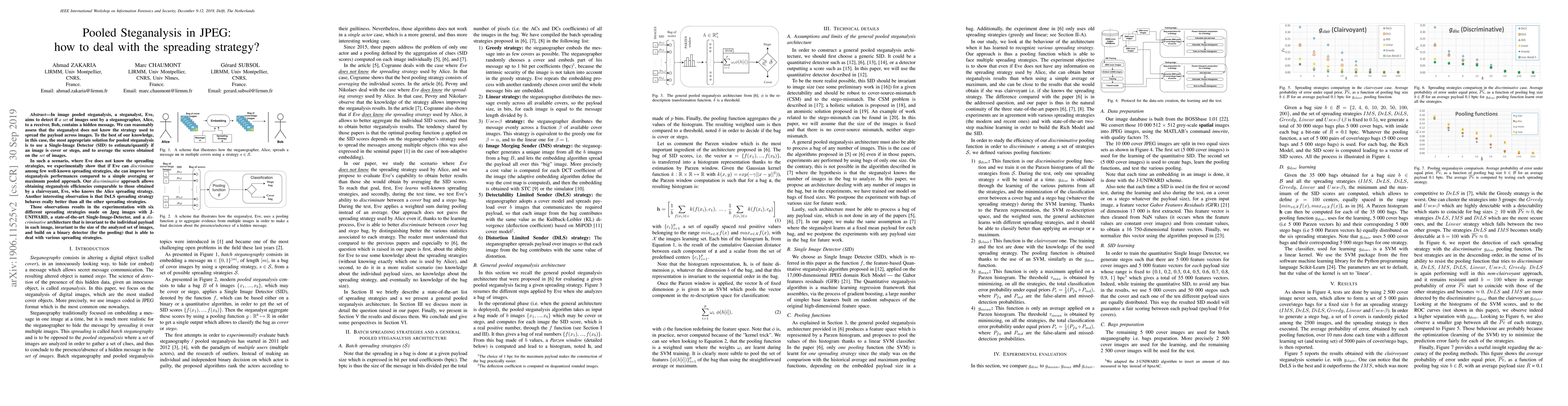 In image pooled steganalysis, a steganalyst, Eve, aims to detect if a set of images sent by a steganographer, Alice, to a receiver, Bob, contains a hidden message. We can reasonably assess that the steganalyst does not know the strategy used to spread the payload across images. To the best of our knowledge, in this case, the most appropriate solution for pooled steganalysis is to use a Single-Image Detector (SID) to estimate/quantify if an image is cover or stego, and to average the scores obtained on the set of images. In such a scenario, where Eve does not know the spreading strategies, we experimentally show that if Eve can discriminate among few well-known spreading strategies, she can improve her steganalysis performances compared to a simple averaging or maximum pooled approach. Our discriminative approach allows obtaining steganalysis efficiencies comparable to those obtained by a clairvoyant, Eve, who knows the Alice spreading strategy. Another interesting observation is that DeLS spreading strategy behaves really better than all the other spreading strategies. Those observations results in the experimentation with six different spreading strategies made on Jpeg images with J-UNIWARD, a state-of-the-art Single-Image-Detector, and a discriminative architecture that is invariant to the individual payload in each image, invariant to the size of the analyzed set of images, and build on a binary detector (for the pooling) that is able to deal with various spreading strategies.