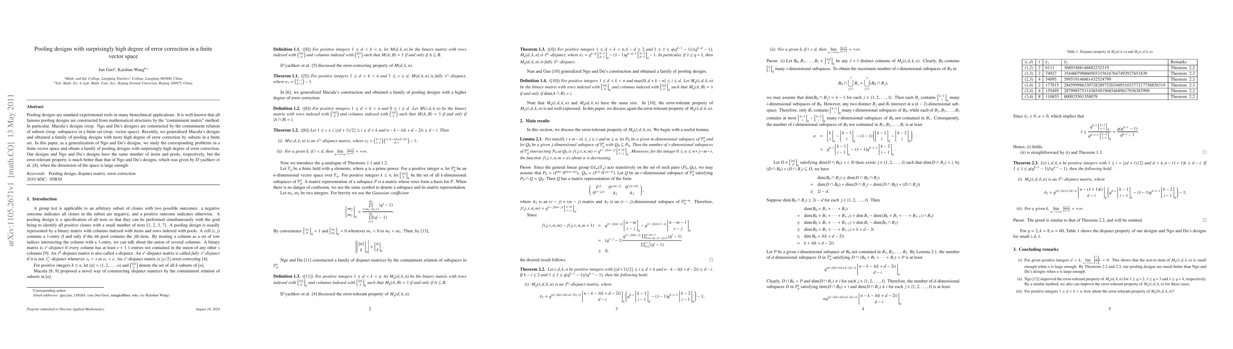 This paper introduces a new family of pooling designs in finite vector spaces, generalizing Ngo and Du's designs. These designs offer a surprisingly high degree of error correction, significantly outperforming previous methods when the vector space dimension is large.