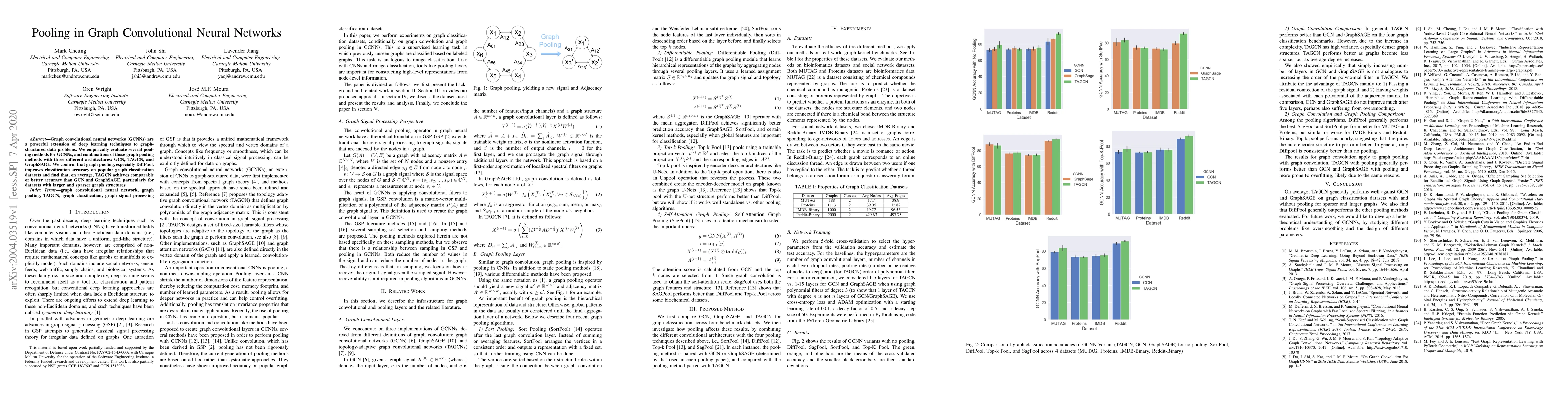 Graph convolutional neural networks (GCNNs) are a powerful extension of deep learning techniques to graph-structured data problems. We empirically evaluate several pooling methods for GCNNs, and combinations of those graph pooling methods with three different architectures: GCN, TAGCN, and GraphSAGE. We confirm that graph pooling, especially DiffPool, improves classification accuracy on popular graph classification datasets and find that, on average, TAGCN achieves comparable or better accuracy than GCN and GraphSAGE, particularly for datasets with larger and sparser graph structures.