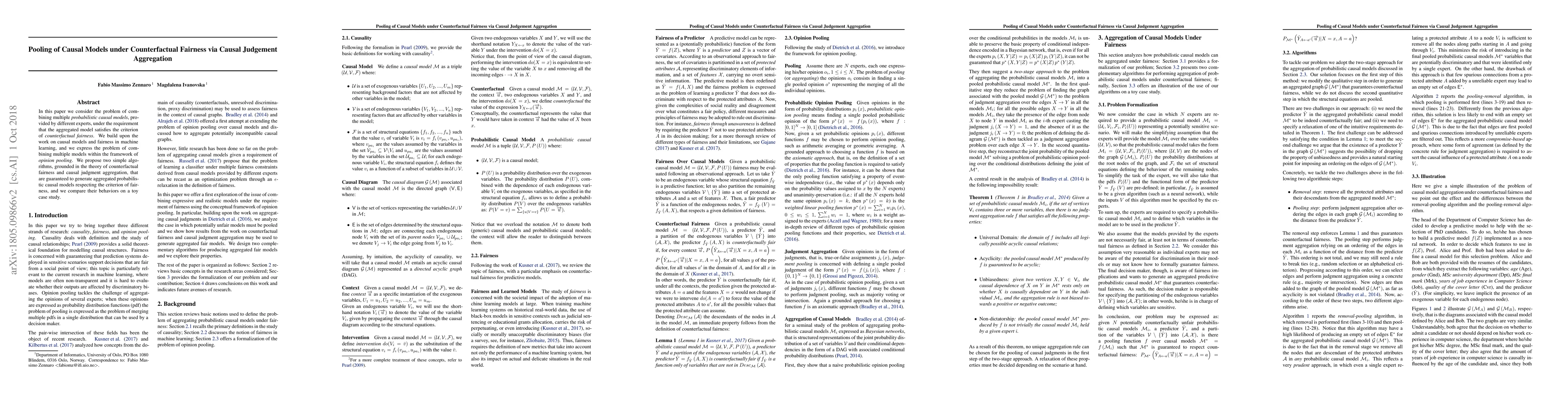 This paper presents algorithms for combining multiple probabilistic causal models from different experts while ensuring counterfactual fairness. It leverages causal judgment aggregation to propose two algorithms that generate aggregated models respecting fairness criteria, and evaluates them on a simple case study.