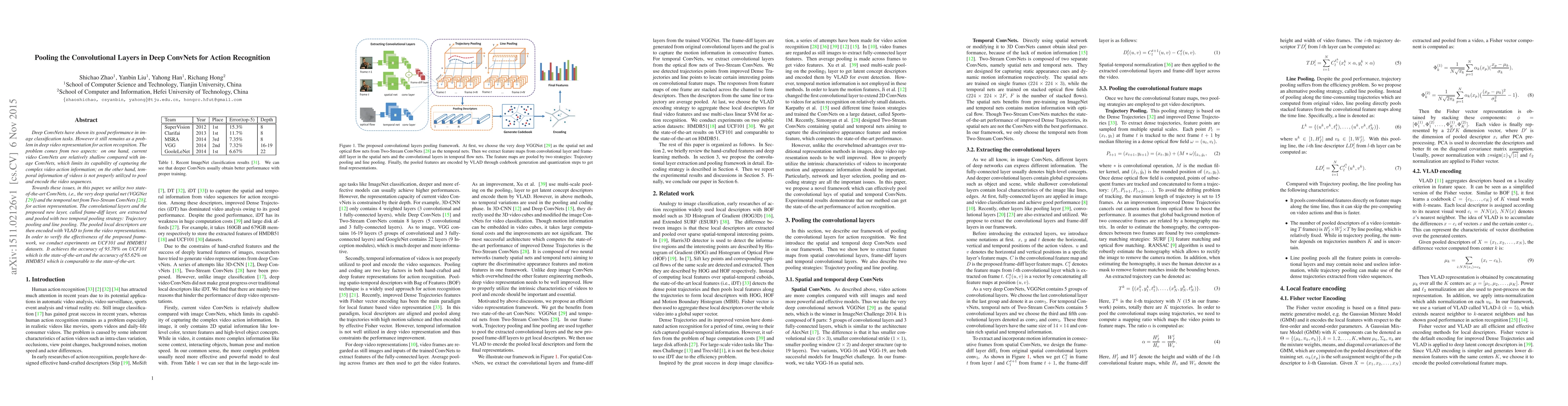 This paper proposes a method to enhance deep convolutional networks for action recognition by pooling convolutional layers and introducing a frame-diff layer, employing two temporal pooling strategies and VLAD encoding, achieving state-of-the-art results on UCF101 and competitive results on HMDB51 datasets.