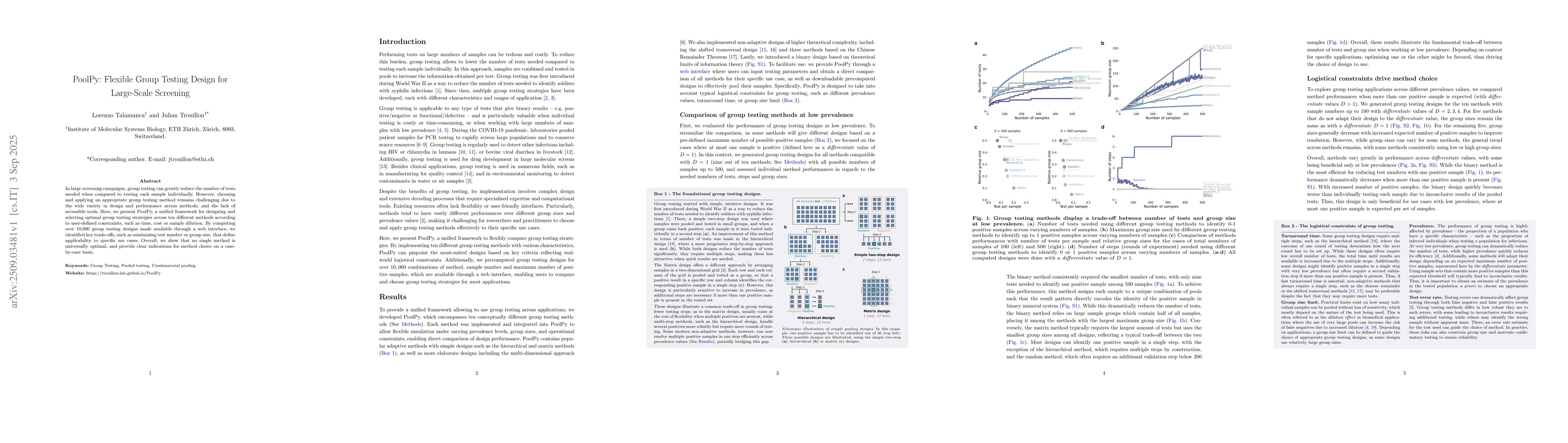 In large screening campaigns, group testing can greatly reduce the number of tests needed when compared to testing each sample individually. However, choosing and applying an appropriate group testing method remains challenging due to the wide variety in design and performance across methods, and the lack of accessible tools. Here, we present PoolPy, a unified framework for designing and selecting optimal group testing strategies across ten different methods according to user-defined constraints, such as time, cost or sample dilution. By computing over 10,000 group testing designs made available through a web interface, we identified key trade-offs, such as minimizing test number or group size, that define applicability to specific use cases. Overall, we show that no single method is universally optimal, and provide clear indications for method choice on a case-by-case basis.