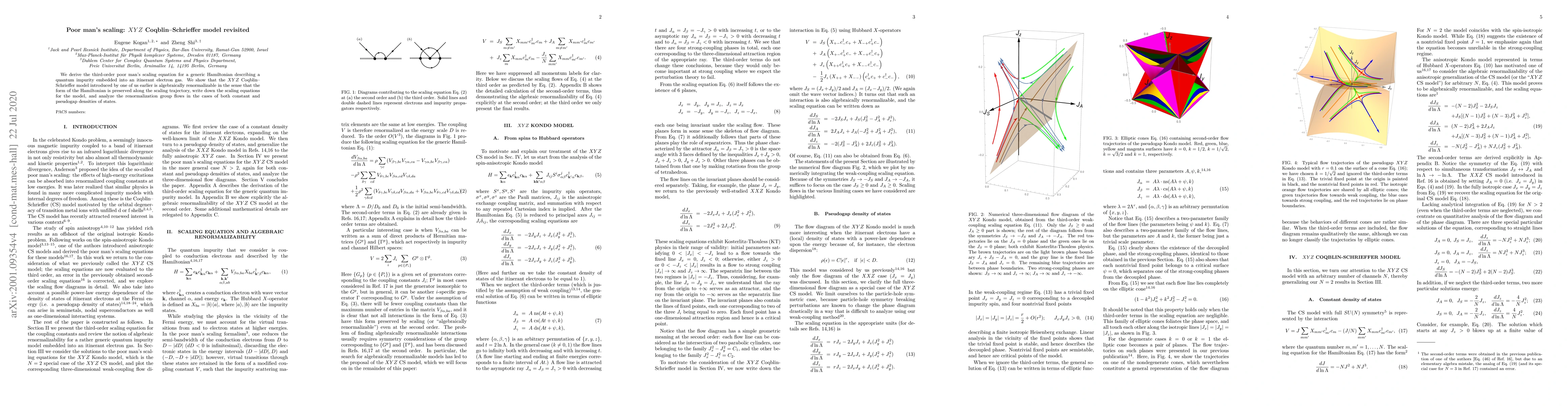 We derive the third-order poor man's scaling equation for a generic Hamiltonian describing a quantum impurity embedded into an itinerant electron gas. We show that the $XYZ$ Coqblin--Schrieffer model introduced by one of us earlier is algebraically renormalizable in the sense that the form of the Hamiltonian is preserved along the scaling trajectory, write down the scaling equations for the model, and analyze the renormalization group flows in the cases of both constant and pseudogap densities of states.