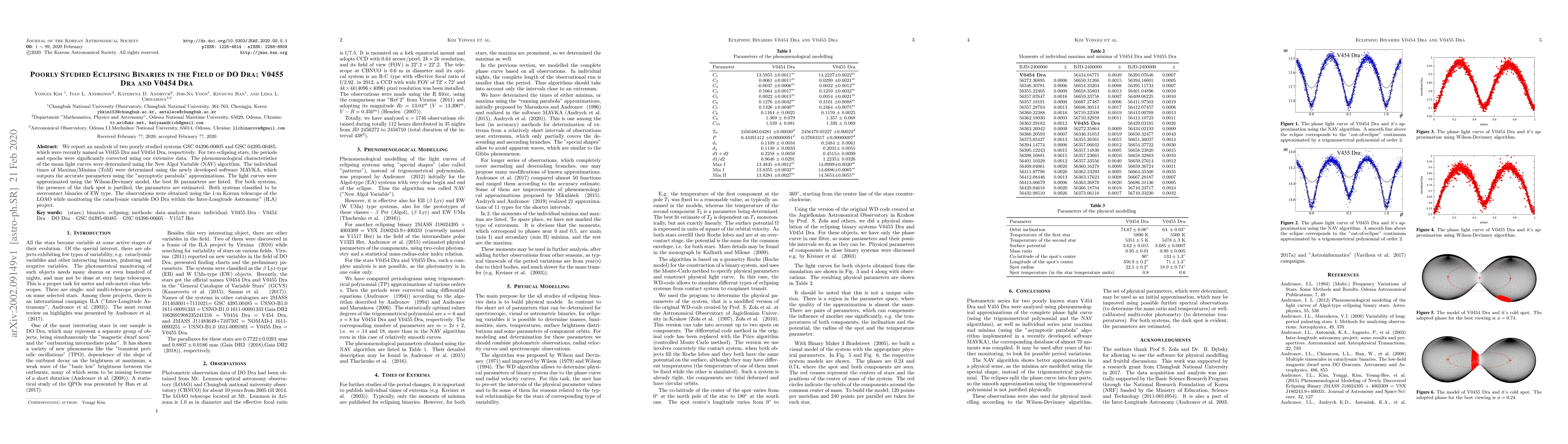The research analyzed two poorly studied eclipsing binary systems, V0455 Dra and V0454 Dra, using phenomenological approximations of their complete phase light curves with trigonometric polynomials and the NAV algorithm. Individual times of maxima and minima were determined using the 'asymptotic parabola' algorithm implemented in the recently developed MAVKA software.