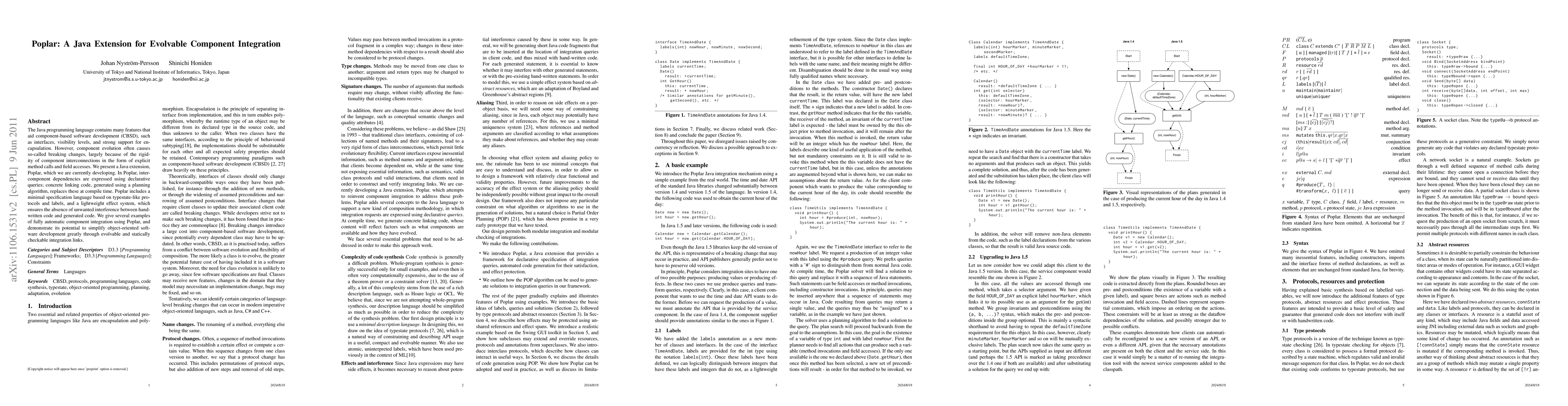 Poplar is a Java extension designed to facilitate the integration of evolvable components by using declarative queries and a planning algorithm to generate linking code, thereby mitigating breaking changes during component evolution. It employs a minimal specification language and a lightweight effect system to ensure seamless and statically checkable integration.