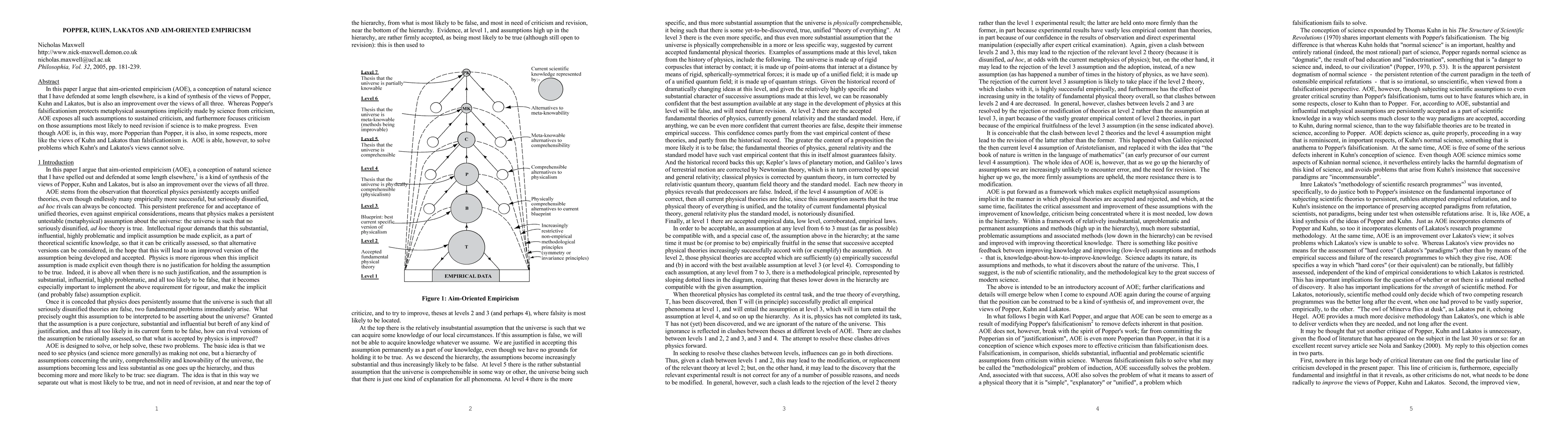 This paper argues that aim-oriented empiricism (AOE) is a synthesis of Popper's falsificationism, Kuhn's paradigm shifts, and Lakatos's scientific research programs, while also improving upon all three by subjecting all scientific assumptions to rigorous criticism to facilitate progress. AOE uniquely resolves issues that Kuhn's and Lakatos's theories cannot address.