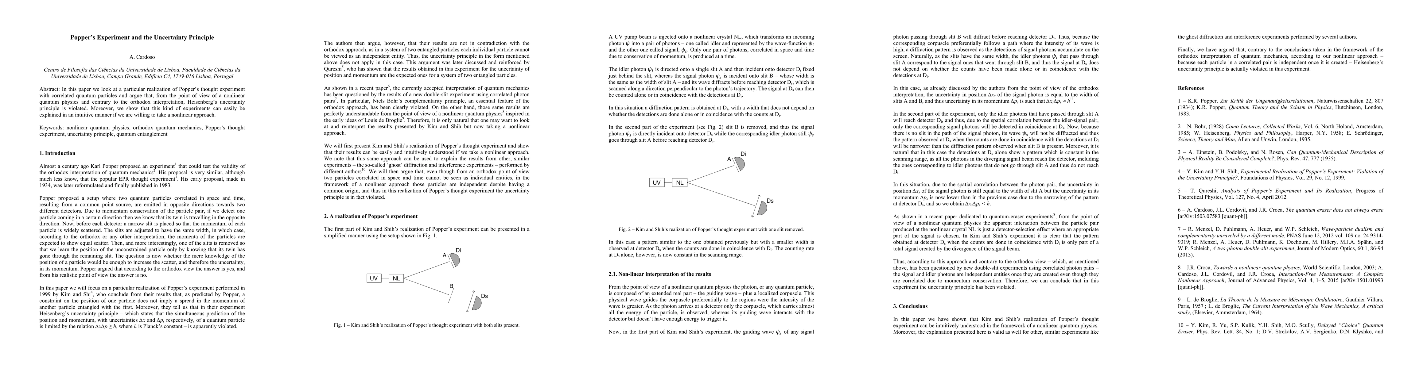 This paper argues that Popper's thought experiment with correlated quantum particles violates Heisenberg's uncertainty principle when viewed through a nonlinear quantum physics lens, contrary to orthodox interpretations, and suggests a more intuitive explanation for such experiments using a nonlinear approach.