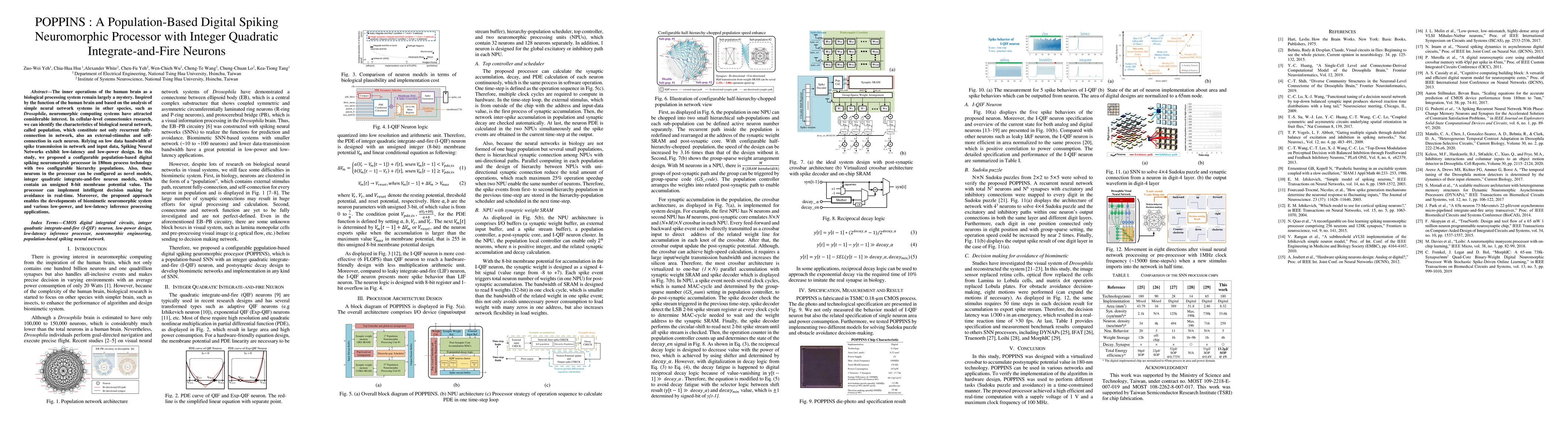 This paper introduces POPPINS, a configurable population-based digital spiking neuromorphic processor utilizing integer quadratic integrate-and-fire neurons. The design aims to mimic the low-power, low-latency characteristics of biological neural networks, enabling real-time intelligent decision-making and supporting biomimetic neuromorphic systems.