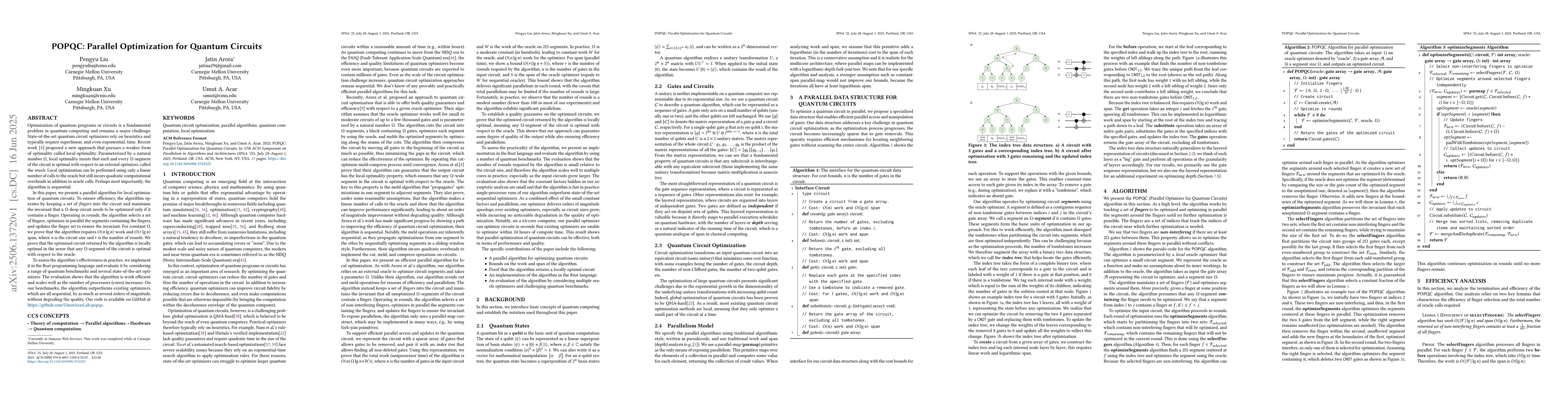 Optimization of quantum programs or circuits is a fundamental problem in quantum computing and remains a major challenge. State-of-the-art quantum circuit optimizers rely on heuristics and typically require superlinear, and even exponential, time. Recent work proposed a new approach that pursues a weaker form of optimality called local optimality. Parameterized by a natural number $\Omega$, local optimality insists that each and every $\Omega$-segment of the circuit is optimal with respect to an external optimizer, called the oracle. Local optimization can be performed using only a linear number of calls to the oracle but still incurs quadratic computational overheads in addition to oracle calls. Perhaps most importantly, the algorithm is sequential. In this paper, we present a parallel algorithm for local optimization of quantum circuits. To ensure efficiency, the algorithm operates by keeping a set of fingers into the circuit and maintains the invariant that a $\Omega$-deep circuit needs to be optimized only if it contains a finger. Operating in rounds, the algorithm selects a set of fingers, optimizes in parallel the segments containing the fingers, and updates the finger set to ensure the invariant. For constant $\Omega$, we prove that the algorithm requires $O(n\lg{n})$ work and $O(r\lg{n})$ span, where $n$ is the circuit size and $r$ is the number of rounds. We prove that the optimized circuit returned by the algorithm is locally optimal in the sense that any $\Omega$-segment of the circuit is optimal with respect to the oracle.