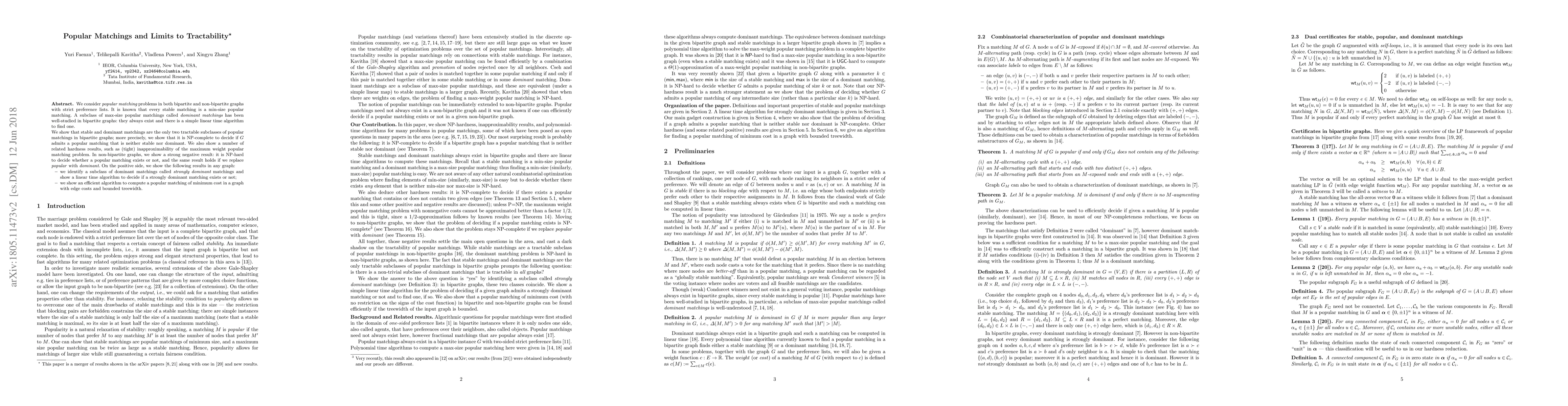 We consider popular matching problems in both bipartite and non-bipartite graphs with strict preference lists. It is known that every stable matching is a min-size popular matching. A subclass of max-size popular matchings called dominant matchings has been well-studied in bipartite graphs: they always exist and there is a simple linear time algorithm to find one. We show that stable and dominant matchings are the only two tractable subclasses of popular matchings in bipartite graphs; more precisely, we show that it is NP-complete to decide if $G$ admits a popular matching that is neither stable nor dominant. We also show a number of related hardness results, such as (tight) inapproximability of the maximum weight popular matching problem. In non-bipartite graphs, we show a strong negative result: it is NP-hard to decide whether a popular matching exists or not, and the same result holds if we replace popular with dominant. On the positive side, we show the following results in any graph: - we identify a subclass of dominant matchings called strongly dominant matchings and show a linear time algorithm to decide if a strongly dominant matching exists or not; - we show an efficient algorithm to compute a popular matching of minimum cost in a graph with edge costs and bounded treewidth.