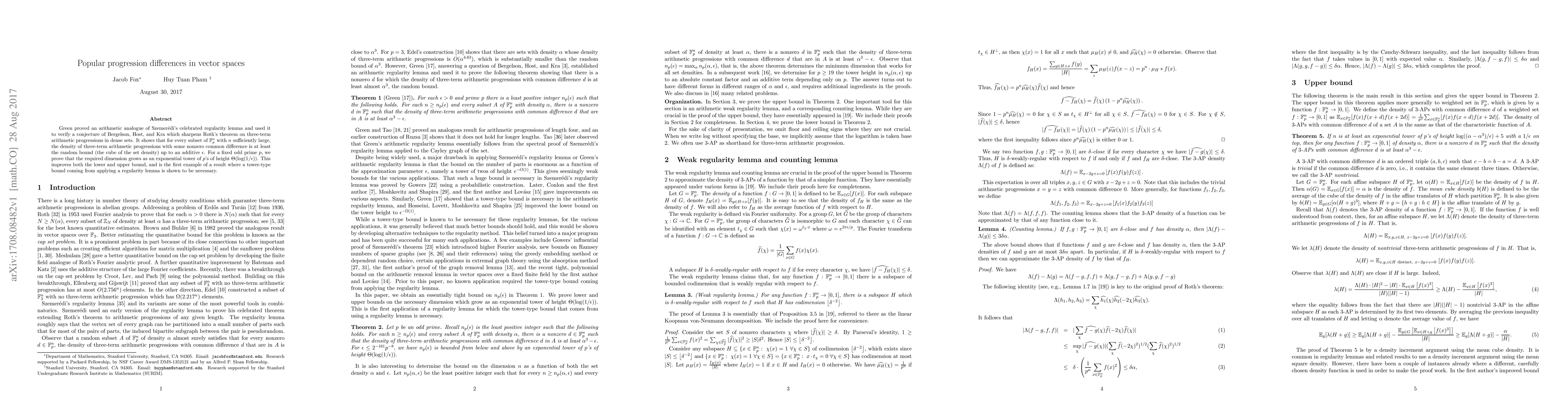 Green's work proves an arithmetic analogue of Szemerédi's regularity lemma, verifying a conjecture that sharpens Roth's theorem on three-term arithmetic progressions. The required dimension for this result is shown to grow as an exponential tower of primes, improving both lower and upper bounds.