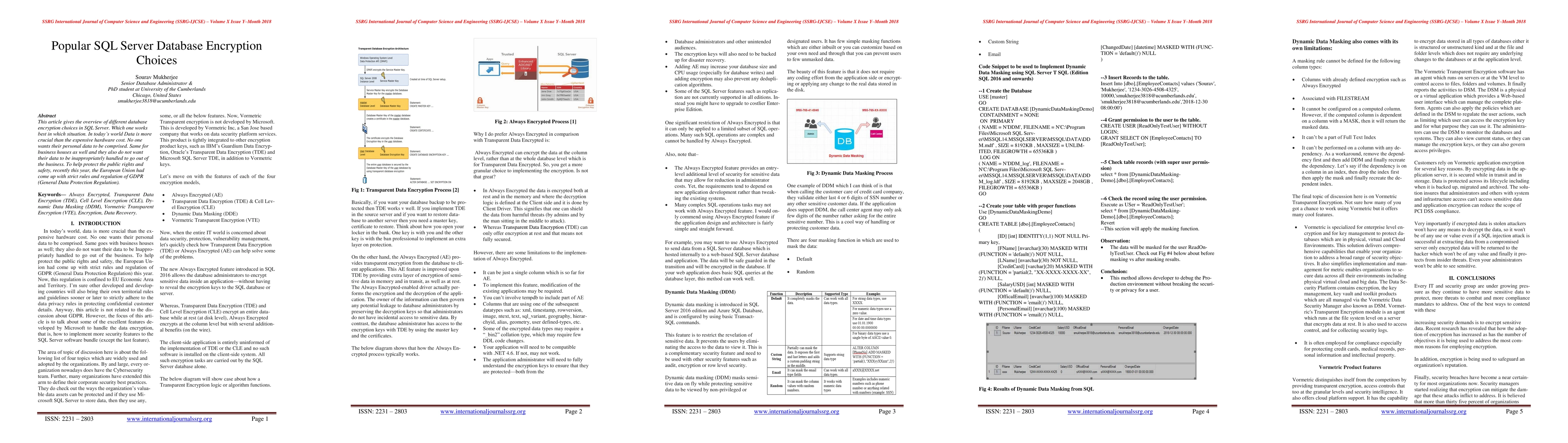 This article gives an overview of different database encryption choices in SQL Server. Which one works best in which situation. In today's world Data is more crucial than the expensive hardware cost. No one wants their personal data to be comprised. Same for business houses as well and they also do not want their data to be inappropriately handled to go out of the business. To help protect the public rights and safety, recently this year, the European Union had come up with strict rules and regulation of GDPR (General Data Protection Regulation).