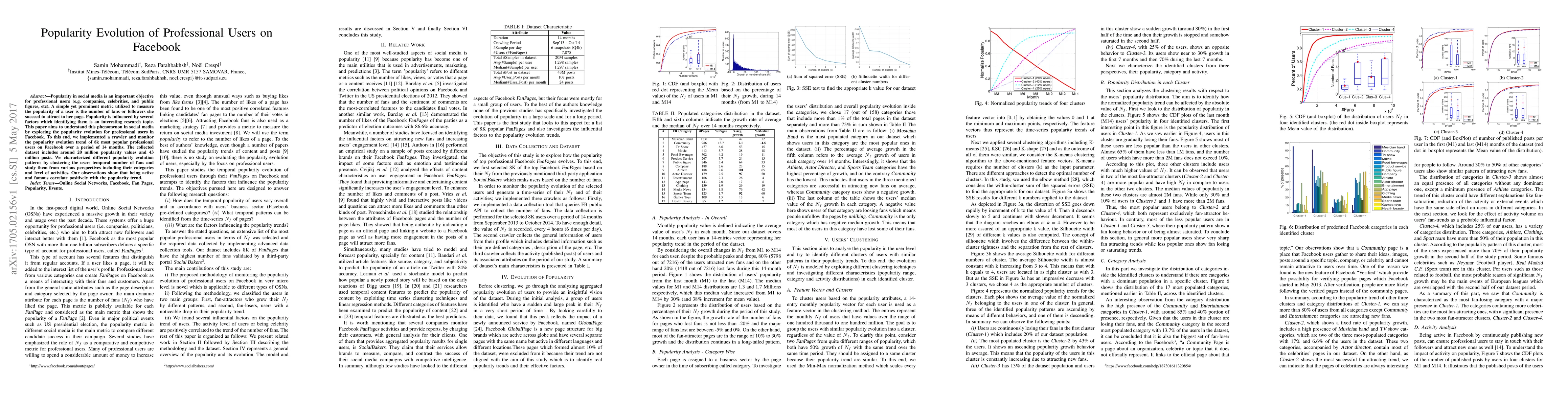 This paper investigates the popularity evolution of professional users on Facebook by analyzing the number of followers over 14 months for 8,000 prominent users. Findings reveal distinct popularity patterns correlating activity and fame with sustained popularity.