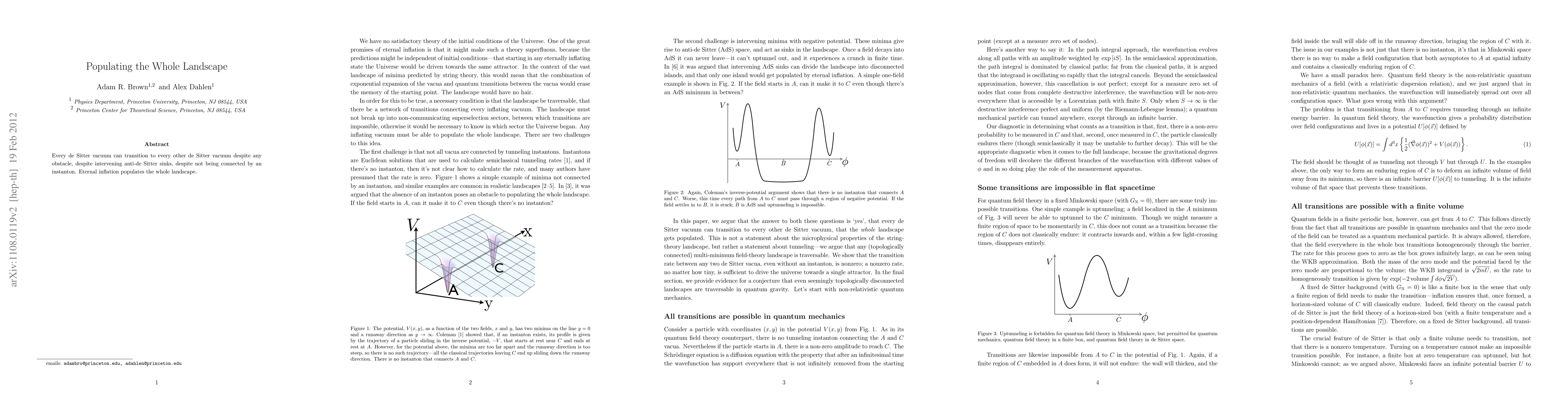 Summary: The paper demonstrates that all de Sitter vacua can transition to any other de Sitter vacuum through eternal inflation, regardless of intervening anti-de Sitter regions or lack of instanton connections, thus populating the entire landscape.