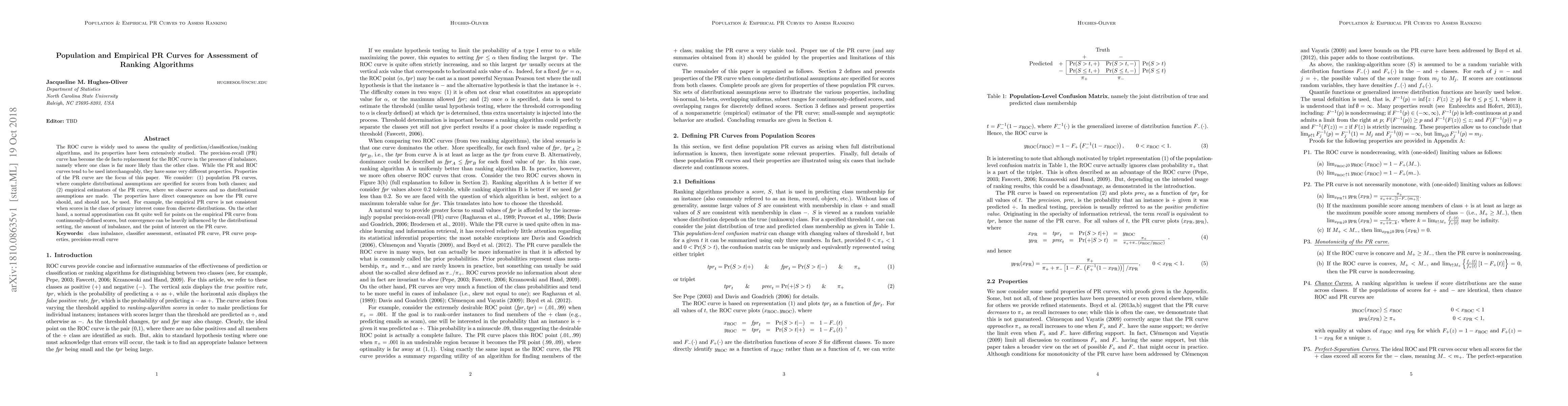 The ROC curve is widely used to assess the quality of prediction/classification/ranking algorithms, and its properties have been extensively studied. The precision-recall (PR) curve has become the de facto replacement for the ROC curve in the presence of imbalance, namely where one class is far more likely than the other class. While the PR and ROC curves tend to be used interchangeably, they have some very different properties. Properties of the PR curve are the focus of this paper. We consider: (1) population PR curves, where complete distributional assumptions are specified for scores from both classes; and (2) empirical estimators of the PR curve, where we observe scores and no distributional assumptions are made. The properties have direct consequence on how the PR curve should, and should not, be used. For example, the empirical PR curve is not consistent when scores in the class of primary interest come from discrete distributions. On the other hand, a normal approximation can fit quite well for points on the empirical PR curve from continuously-defined scores, but convergence can be heavily influenced by the distributional setting, the amount of imbalance, and the point of interest on the PR curve.