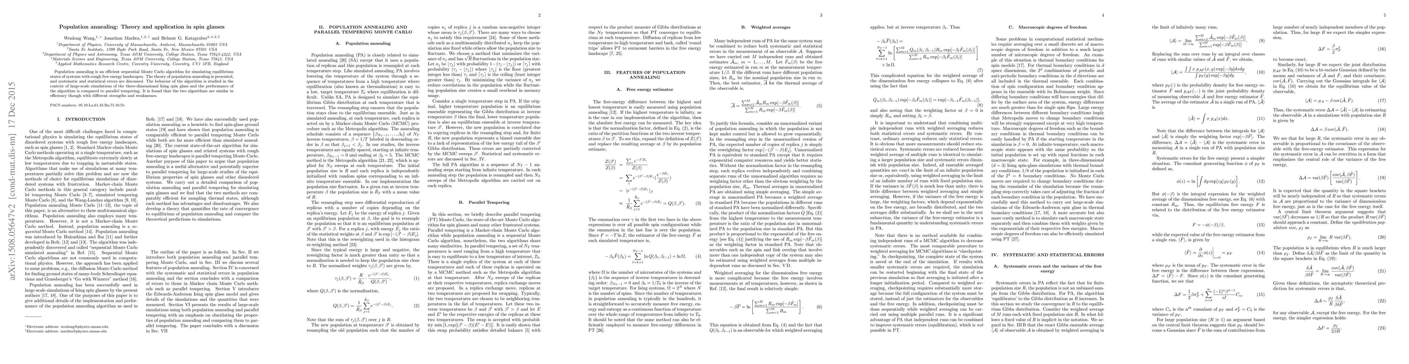 Population annealing is an efficient sequential Monte Carlo algorithm for simulating equilibrium states of systems with rough free energy landscapes. The theory of population annealing is presented, and systematic and statistical errors are discussed. The behavior of the algorithm is studied in the context of large-scale simulations of the three-dimensional Ising spin glass and the performance of the algorithm is compared to parallel tempering. It is found that the two algorithms are similar in efficiency though with different strengths and weaknesses.