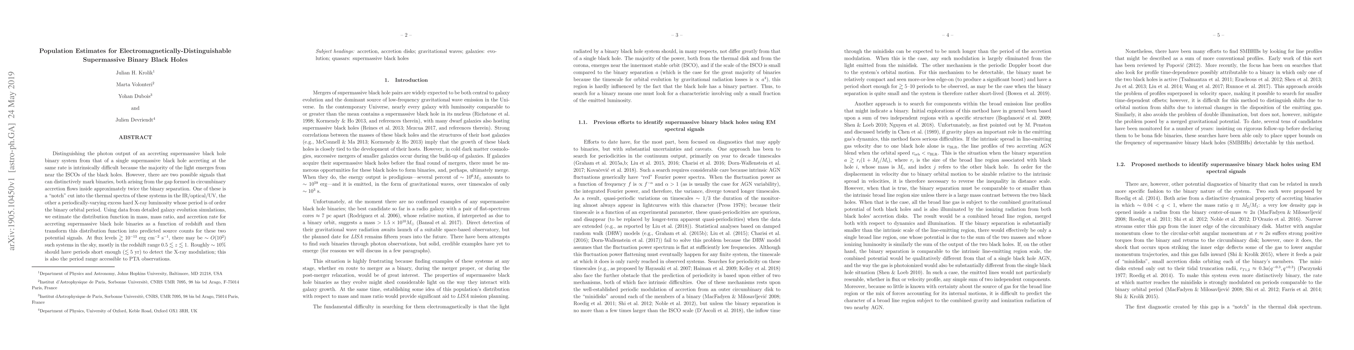 The paper presents a method to estimate the population of electromagnetically distinguishable supermassive binary black hole systems and predict their source counts based on galaxy evolution simulations.