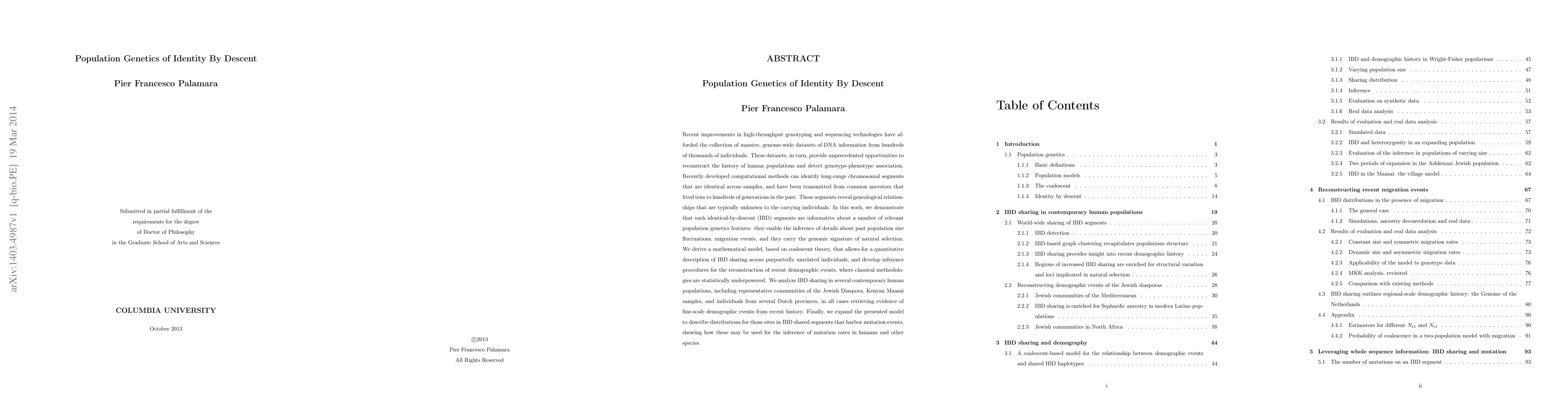 Recent improvements in high-throughput genotyping and sequencing technologies have afforded the collection of massive, genome-wide datasets of DNA information from hundreds of thousands of individuals. These datasets, in turn, provide unprecedented opportunities to reconstruct the history of human populations and detect genotype-phenotype association. Recently developed computational methods can identify long-range chromosomal segments that are identical across samples, and have been transmitted from common ancestors that lived tens to hundreds of generations in the past. These segments reveal genealogical relationships that are typically unknown to the carrying individuals. In this work, we demonstrate that such identical-by-descent (IBD) segments are informative about a number of relevant population genetics features: they enable the inference of details about past population size fluctuations, migration events, and they carry the genomic signature of natural selection. We derive a mathematical model, based on coalescent theory, that allows for a quantitative description of IBD sharing across purportedly unrelated individuals, and develop inference procedures for the reconstruction of recent demographic events, where classical methodologies are statistically underpowered. We analyze IBD sharing in several contemporary human populations, including representative communities of the Jewish Diaspora, Kenyan Maasai samples, and individuals from several Dutch provinces, in all cases retrieving evidence of fine-scale demographic events from recent history. Finally, we expand the presented model to describe distributions for those sites in IBD shared segments that harbor mutation events, showing how these may be used for the inference of mutation rates in humans and other species.