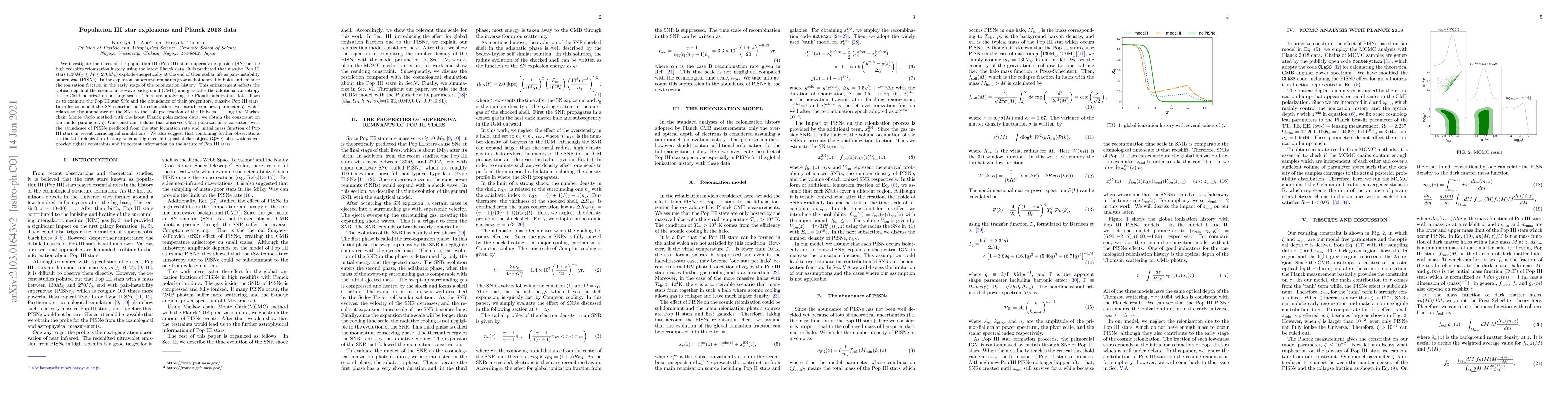 We investigate the effect of the population III (Pop III) stars supernova explosion~(SN) on the high redshifts reionization history using the latest Planck data. It is predicted that massive Pop~III stars~($130M_\odot\leq M\leq 270M_\odot$) explode energetically at the end of their stellar life as pair-instability supernovae (PISNe). In the explosion, supernova remnants grow as hot ionized bubbles and enhance the ionization fraction in the early stage of the reionization history. This enhancement affects the optical depth of the cosmic microwave background~(CMB) and generates the additional anisotropy of the CMB polarization on large scales. Therefore, analyzing the Planck polarization data allows us to examine the Pop III star SNe and the abundance of their progenitors, massive Pop III stars. In order to model the SN contribution to reionization, we introduce a new parameter $\zeta$, which relates to the abundance of the SNe to the collapse fraction of the Universe. Using the Markov chain Monte Carlo method with the latest Planck polarization data, we obtain the constraint on our model parameter, $\zeta$. Our constraint tells us that observed CMB polarization is consistent with the abundance of PISNe predicted from the star formation rate and initial mass function of Pop III stars in recent cosmological simulations. We also suggest that combining further observations on the late reionization history such as high redshift quasi-stellar object~(QSO) observations can provide tighter constraints and important information on the nature of Pop III stars.