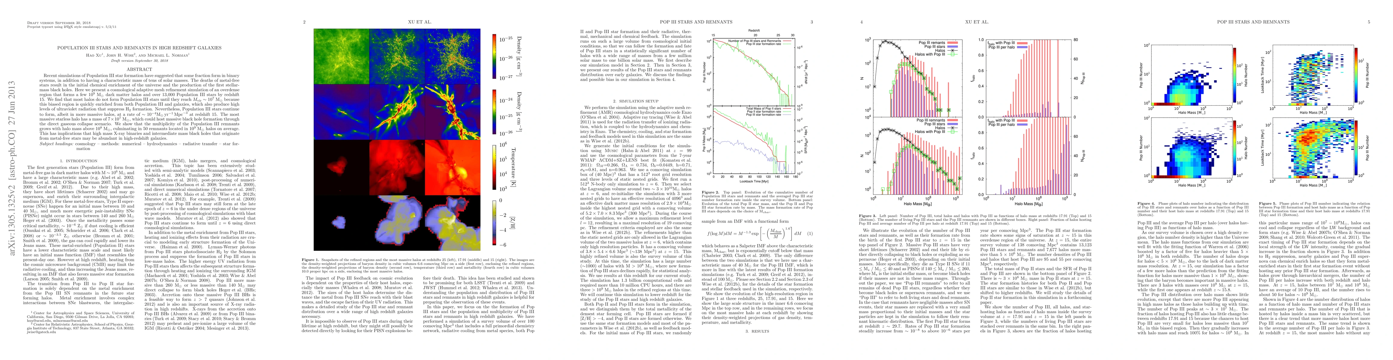 This paper presents a simulation of Population III star formation in high redshift galaxies, finding that stars form in binary systems and massive halos, leading to the production of first-generation stellar-mass black holes and high-mass X-ray binaries. The study highlights that star formation is suppressed in smaller halos due to rapid enrichment and high UV radiation, but continues in more massive halos, suggesting a prevalence of intermediate mass black holes in high-redshift galaxies.
