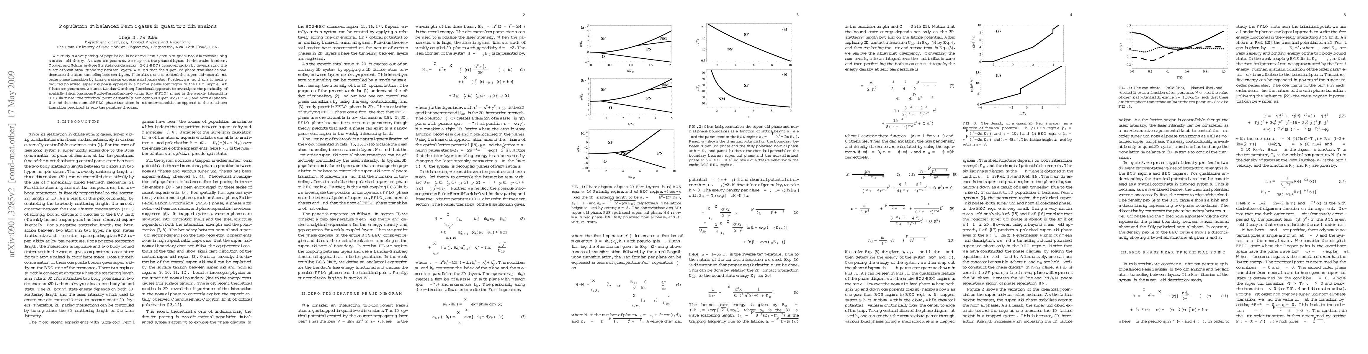 Researchers studied s-wave pairing in population imbalanced Fermi gases in quasi two dimensions, finding that reducing atomic tunneling between layers stabilizes the superfluid phase and allows for controlling a first-order phase transition. They also discovered a narrow region where a polarized superfluid phase appears.