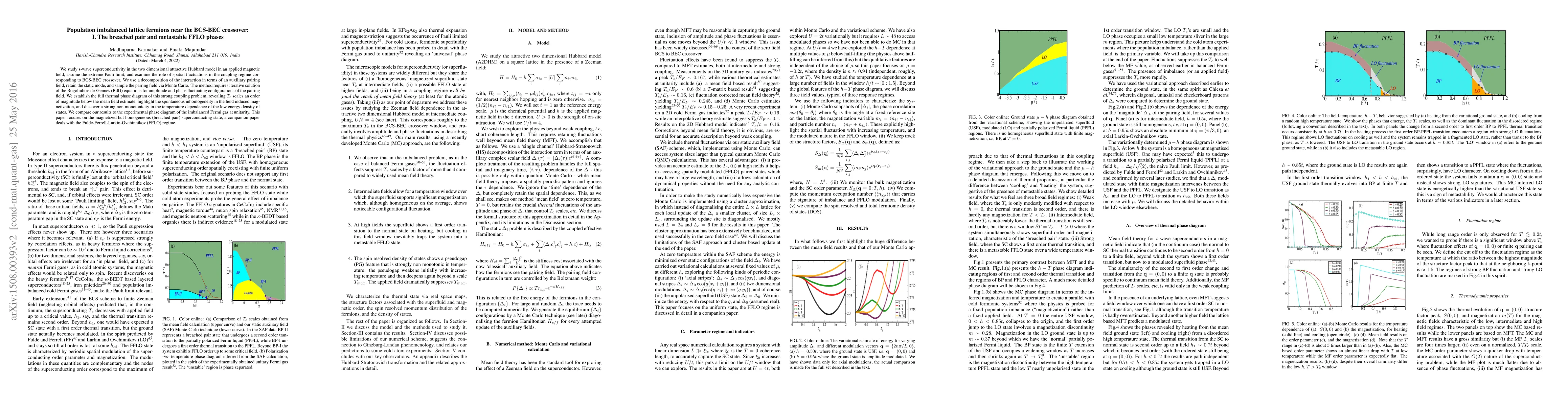 We study s-wave superconductivity in the two dimensional attractive Hubbard model in an applied magnetic field, assume the extreme Pauli limit, and examine the role of spatial fluctuations in the coupling regime corresponding to BCS-BEC crossover. We use a decomposition of the interaction in terms of an auxiliary pairing field, retain the static mode, and sample the pairing field via Monte Carlo. The method requires iterative solution of the Bogoliubov-de-Gennes (BdG) equations for amplitude and phase fluctuating configurations of the pairing field. We establish the full thermal phase diagram of this strong coupling problem, revealing $T_c$ scales an order of magnitude below the mean field estimate, highlight the spontaneous inhomogeneity in the field induced magnetization, and discover a strong non monotonicity in the temperature dependence of the low energy density of states. We compare our results to the experimental phase diagram of the imbalanced Fermi gas at unitarity. This paper focuses on the magnetized but homogeneous (breached pair) superconducting state, a companion paper deals with the Fulde-Ferrell-Larkin-Ovchinnikov (FFLO) regime.