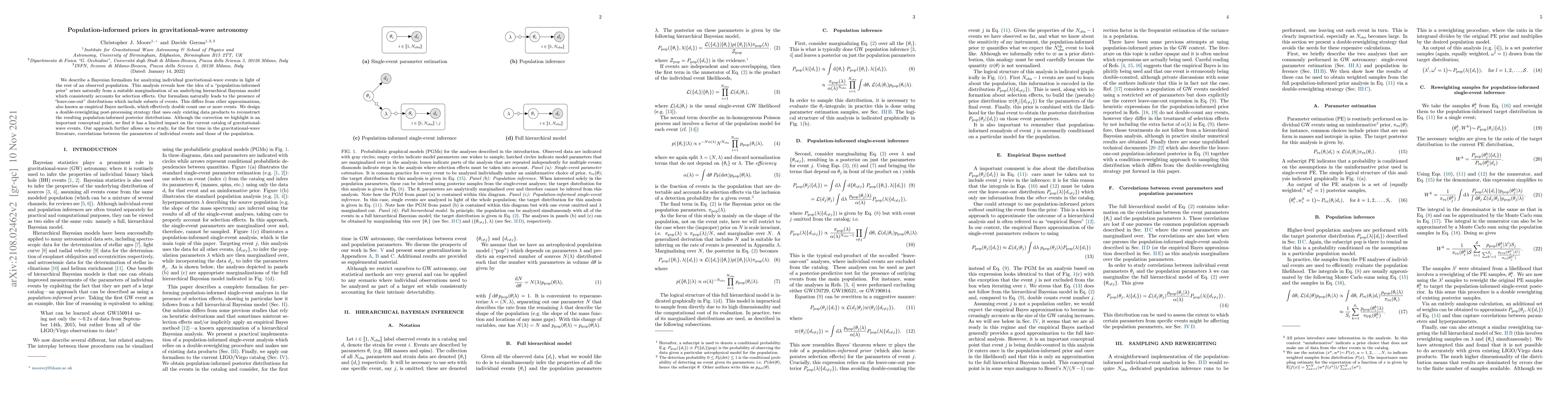We describe a Bayesian formalism for analyzing individual gravitational-wave events in light of the rest of an observed population. This analysis reveals how the idea of a "population-informed prior" arises naturally from a suitable marginalization of an underlying hierarchical Bayesian model which consistently accounts for selection effects. Our formalism naturally leads to the presence of "leave-one-out" distributions which include subsets of events. This differs from other approximations, also known as empirical Bayes methods, which effectively double count one or more events. We design a double-reweighting post-processing strategy that uses only existing data products to reconstruct the resulting population-informed posterior distributions. Although the correction we highlight is an important conceptual point, we find it has a limited impact on the current catalog of gravitational-wave events. Our approach further allows us to study, for the first time in the gravitational-wave literature, correlations between the parameters of individual events and those of the population.